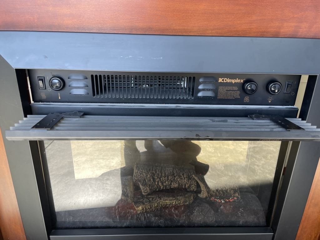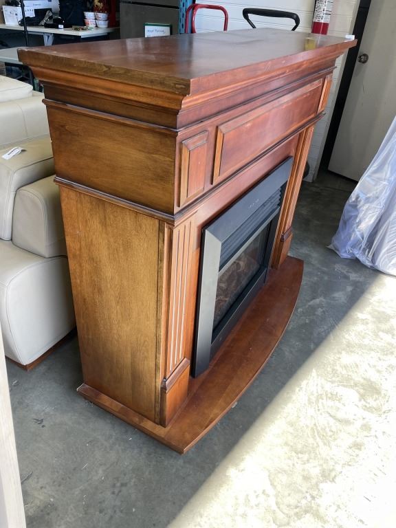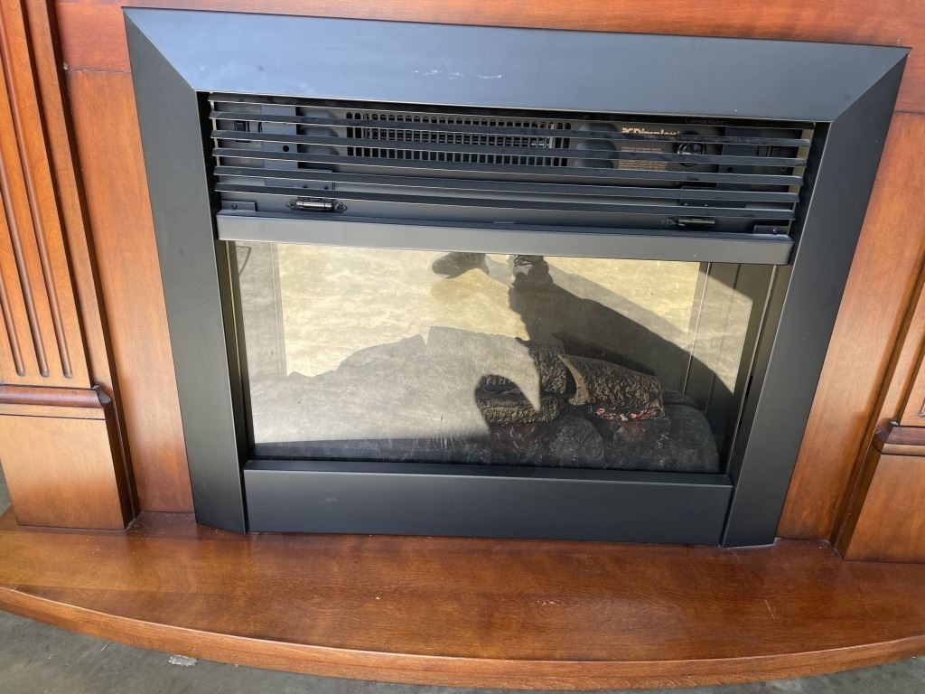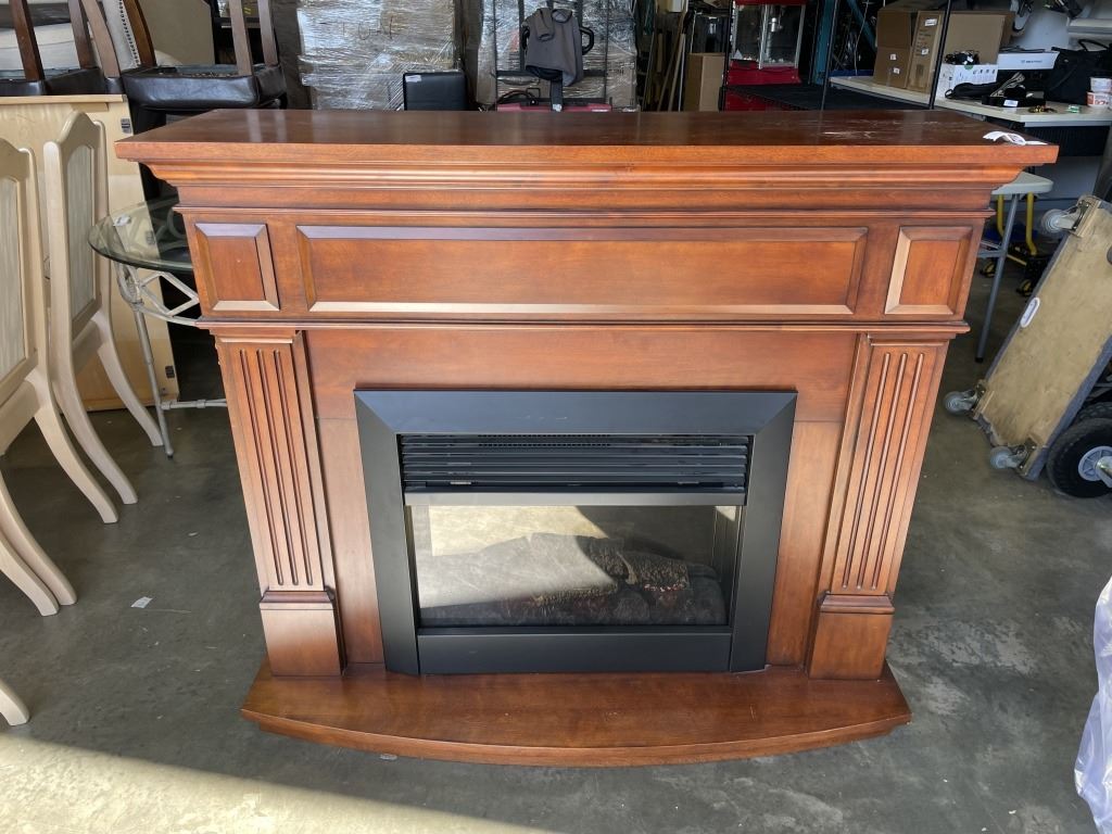 ELECTRIC FIREPLACE AND MAHOGANY FINISH MANTLE