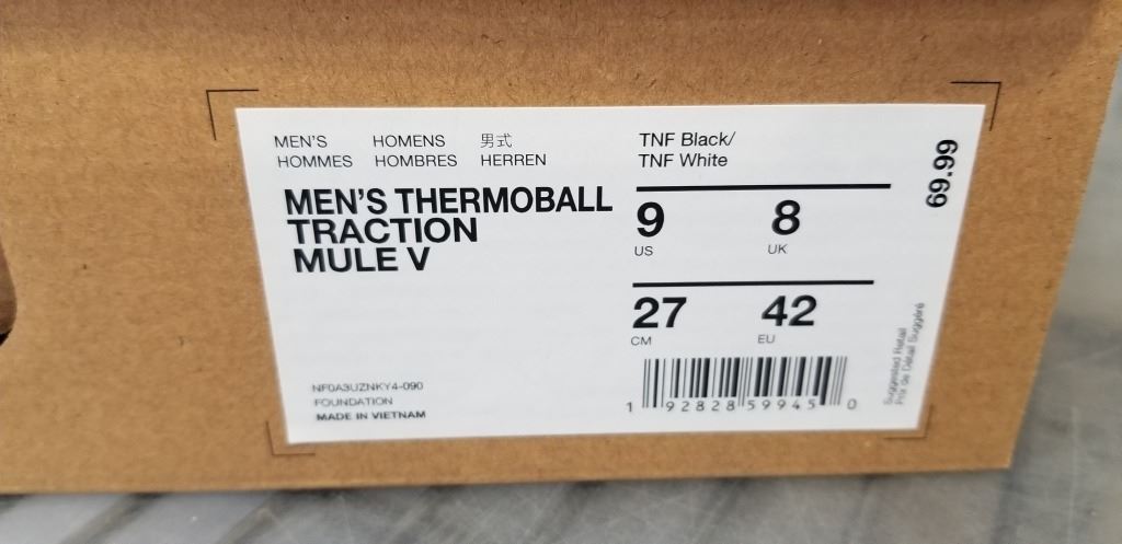 Lot 1089 NEW PAIR OF NORTH FACE THERMOBALL TRACTION MULE V, TNF BLACK MENS SIZE 9