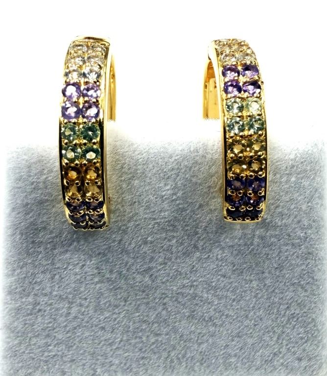 GOLD PLATED STERLING SILVER NATURAL AMETHYST, PERIDOT, CITRINE AND AQUAMARINE EARRINGS, W/A $950.00.