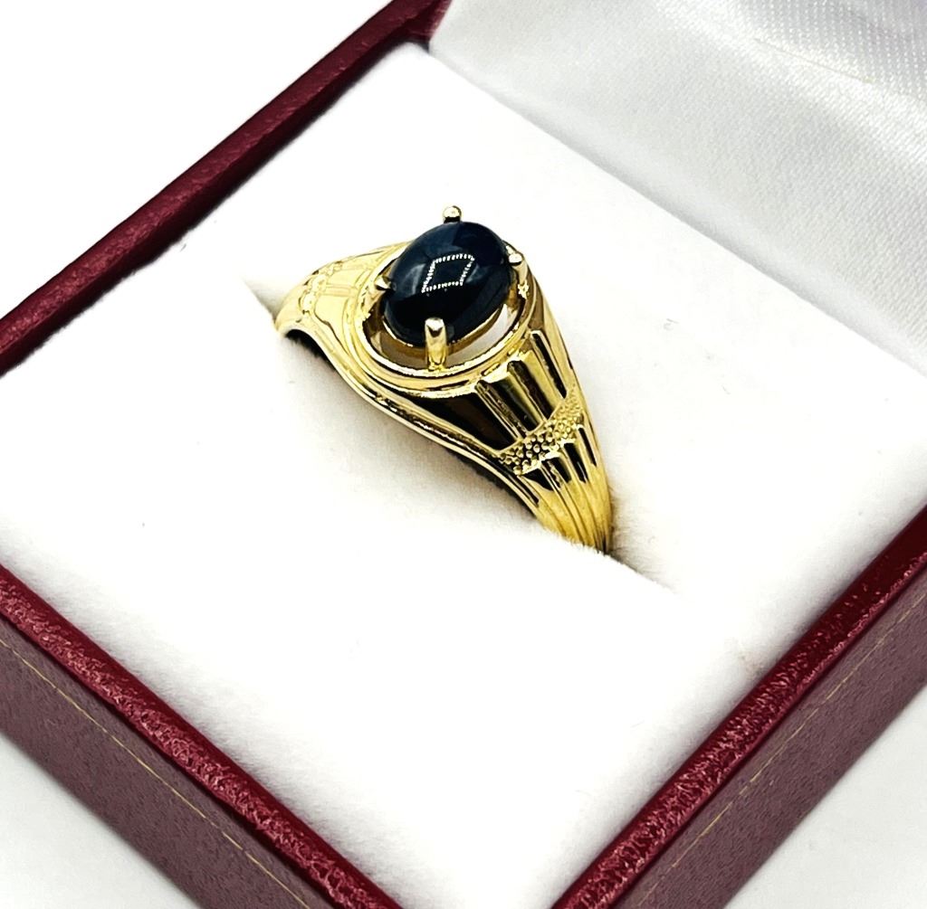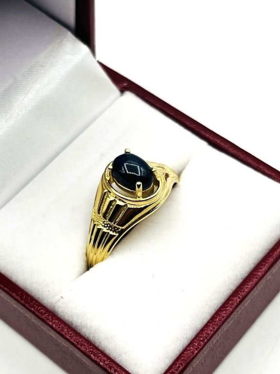 GOLD PLATED STERLING SILVER NATURAL BLUE SAPPHIRE (0.35CT) RING, SIZE 9, W/A $650.00. SAPPHIRE IS THE BIRTHSTONE FOR SEPTEMBER.