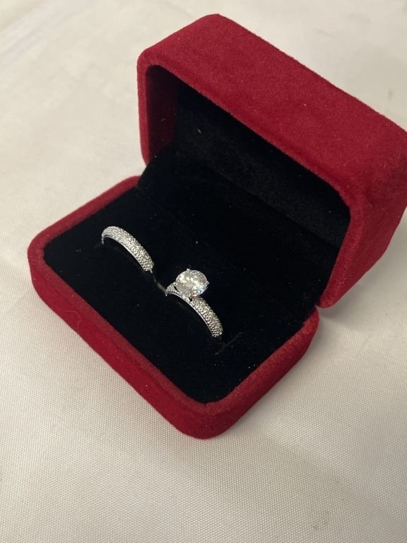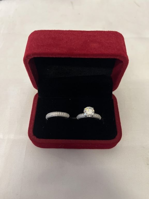 2.00 CT GRA CERTIFIED ROUND BRILLIANT CUT MOISSANITE STONE VVS D COLOR WITH 36 ROUND BRILLIANT CUT CUBIC ZIRCONIA SET IN THE ENGAGEMENT AND WEDDING BAND IN SHANKS SET IN 925 SILVER RINGS SIZE 6.75 RETAIL VALUE $1,600.00
