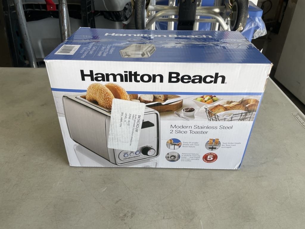 HAMILTON BEACH 2 SLICE MODERN CHROME TOASTER - TESTED WORKING