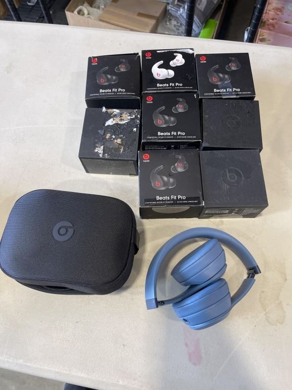 Lot 1133 BOX OF BEATS, EARBUDS AND ELECTRONICS. DEFECTIVE STORE RETURNS