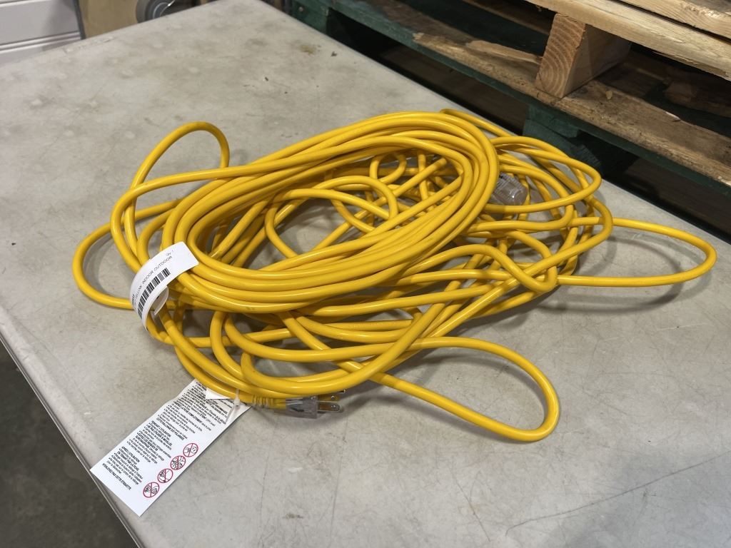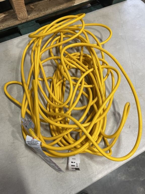 Lot 1154 AS NEW 75FT YELLOW INDOOR OUTDOOR HEAVY DUTY LIGHTED 3 WIRE GROUNDED EXTENSION CORD 16AWG