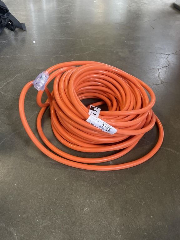 Lot 1155 AS NEW 100FT INDOOR OUTDOOR HEAVY DUTY LIGHTED 3 WIRE GROUNDED EXTENSION CORD,ORANGE, 10AWG
