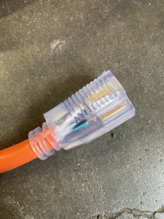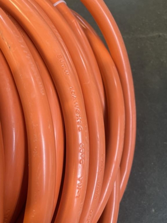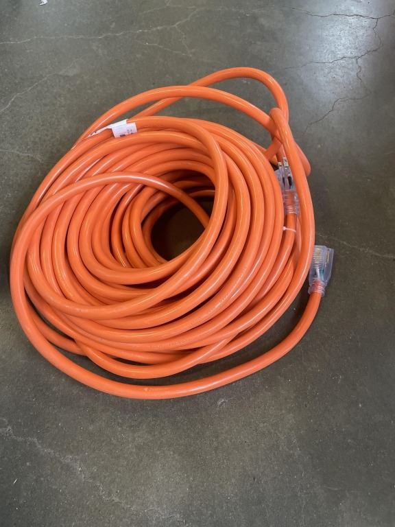 AS NEW 100FT INDOOR OUTDOOR HEAVY DUTY LIGHTED 3 WIRE GROUNDED EXTENSION CORD,ORANGE, 10AWG