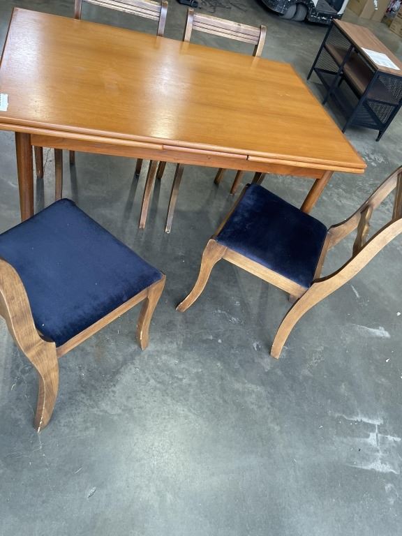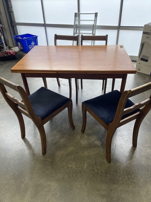 Lot 1164 MID CENTURY TEAK DRAWLEAF DINING TABLE AND 4 VINTAGE DINING CHAIRS