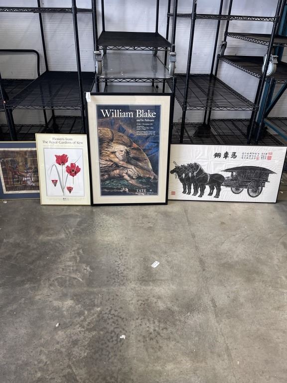 4 ESTYATE ARTWORK INCLUDING FRAMED EASTER CIARRIAGE ON CLOTH SCENE