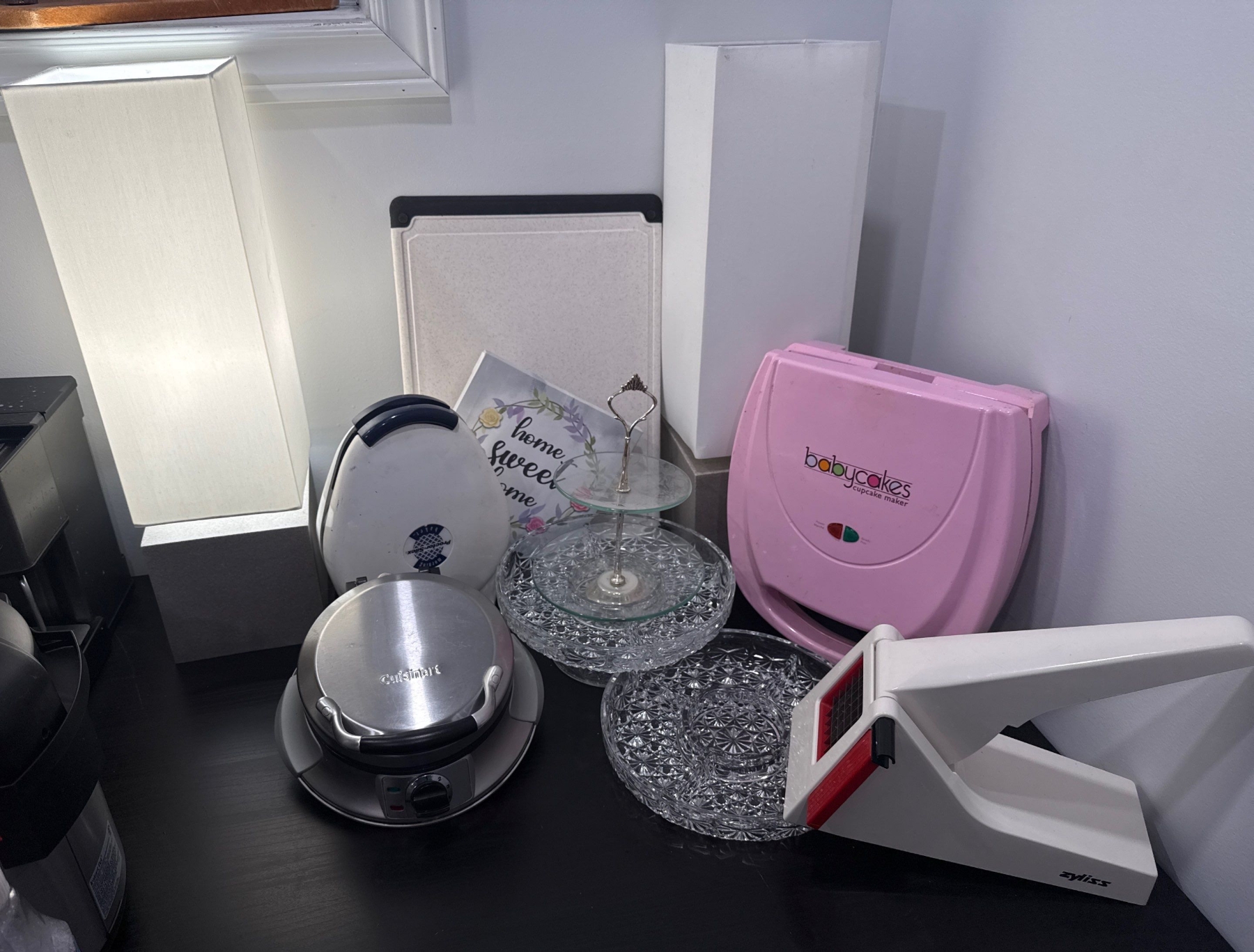 Lot 105 Babycakes Cake Pop Maker 2 Modern Desk Lamps Cutting Boards & More
