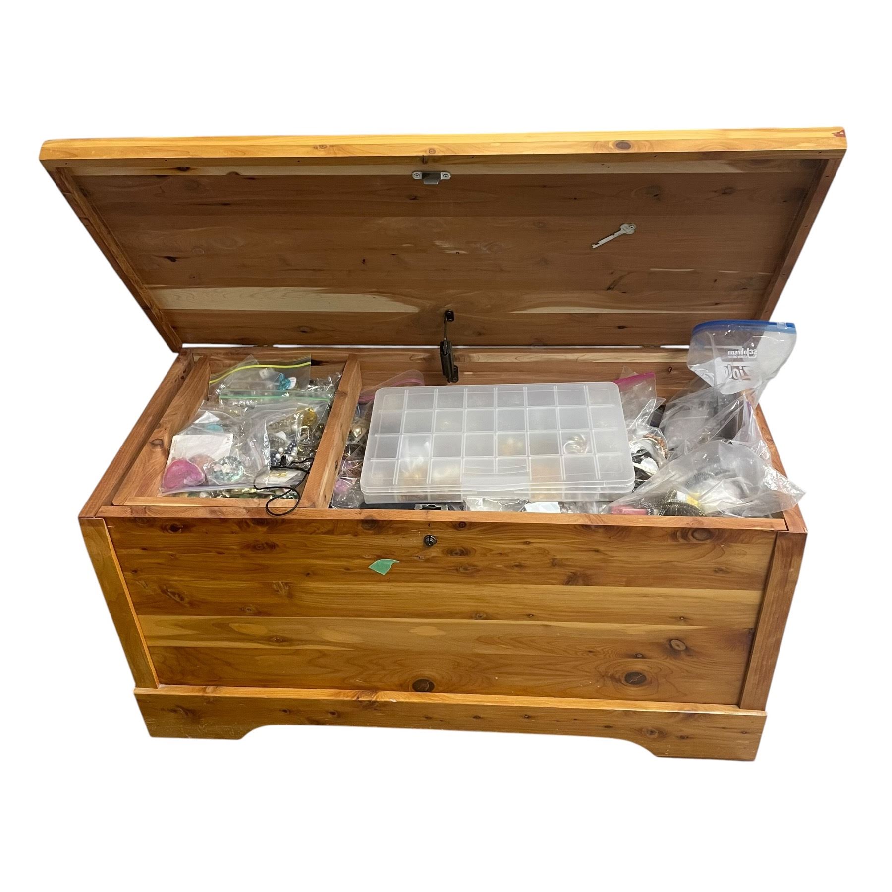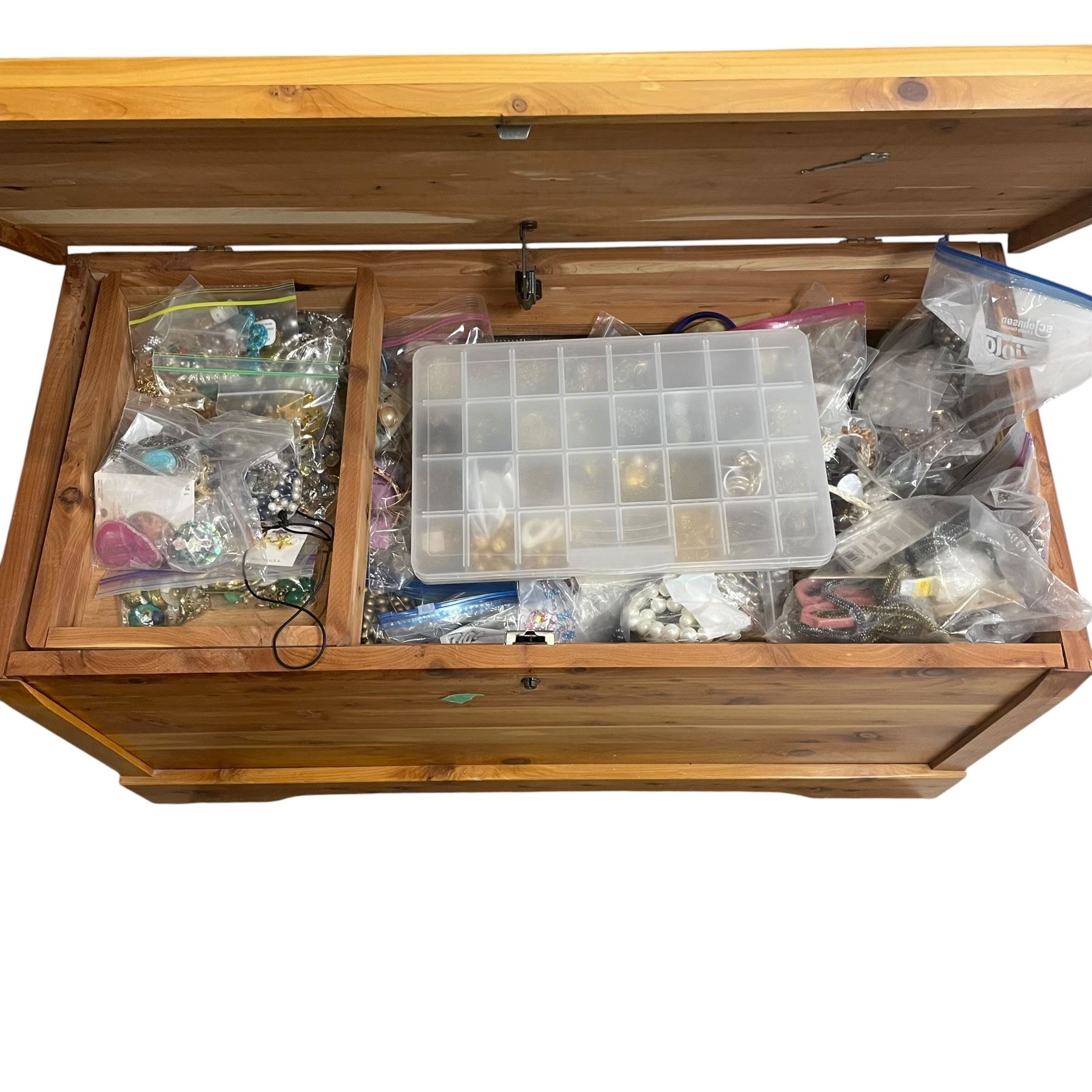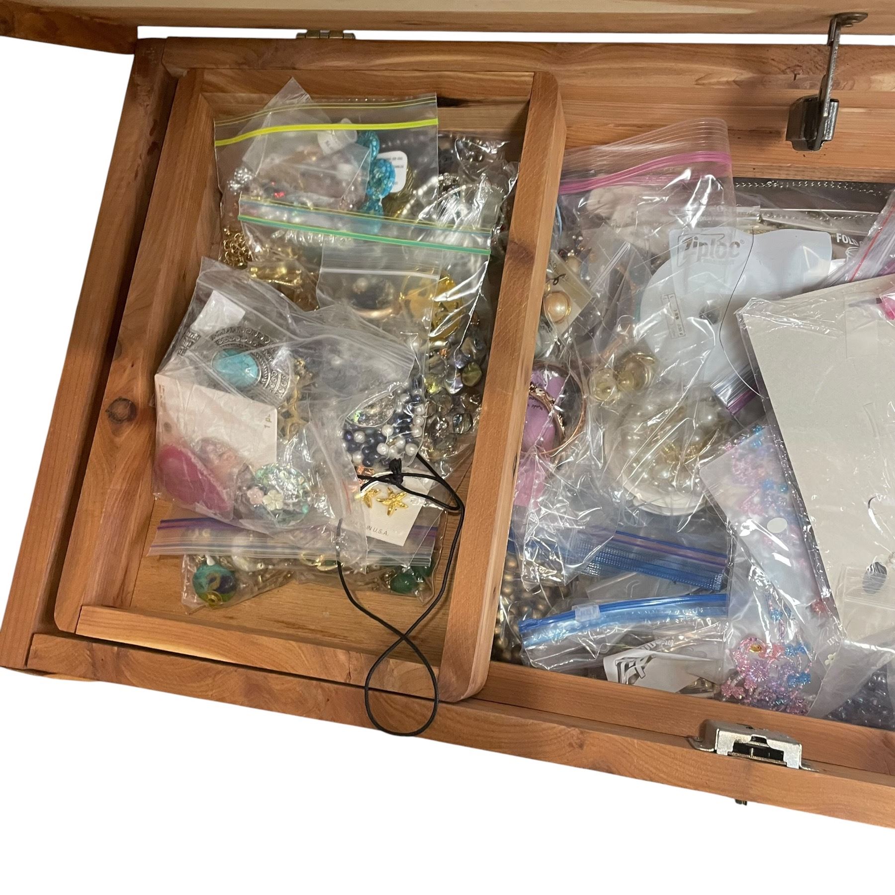 Lot 354A Wooden Chest Full of Costume Jewlery and Beads