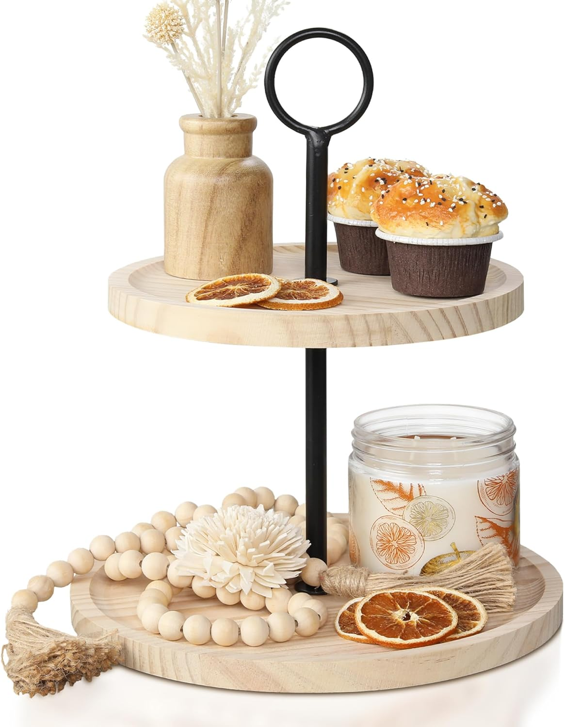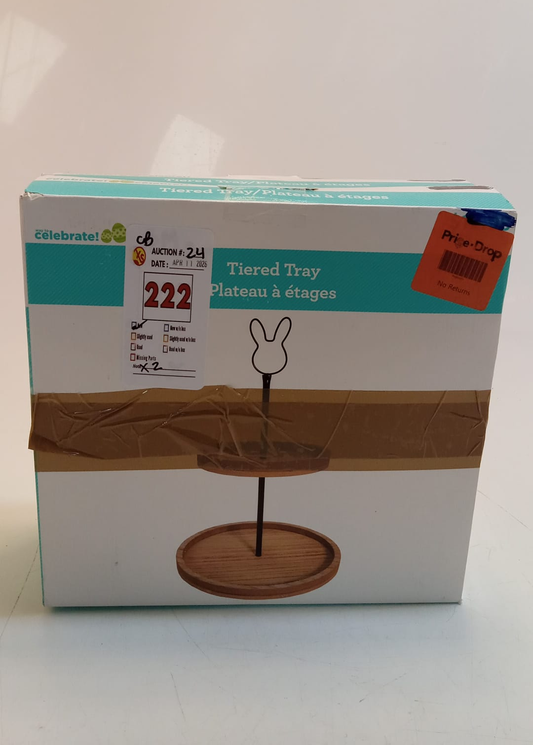 Lot 222 DECORATIVE WOODEN TIERED TRAY STAND 2 PCS -N