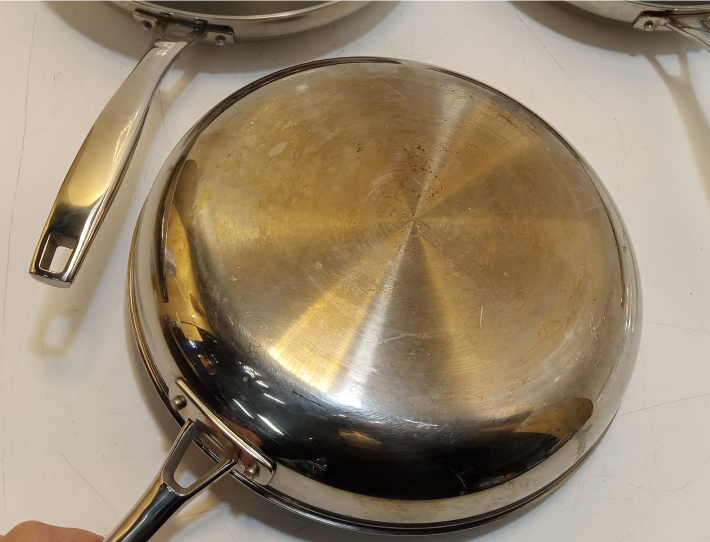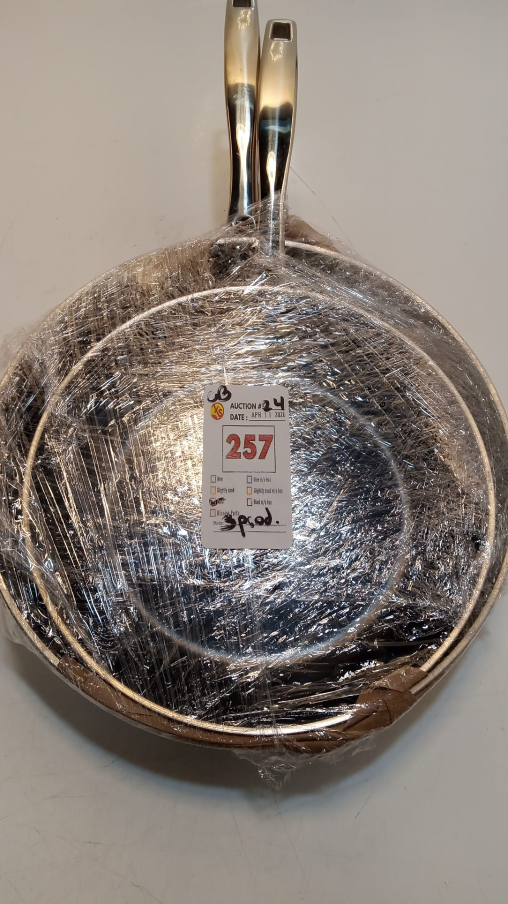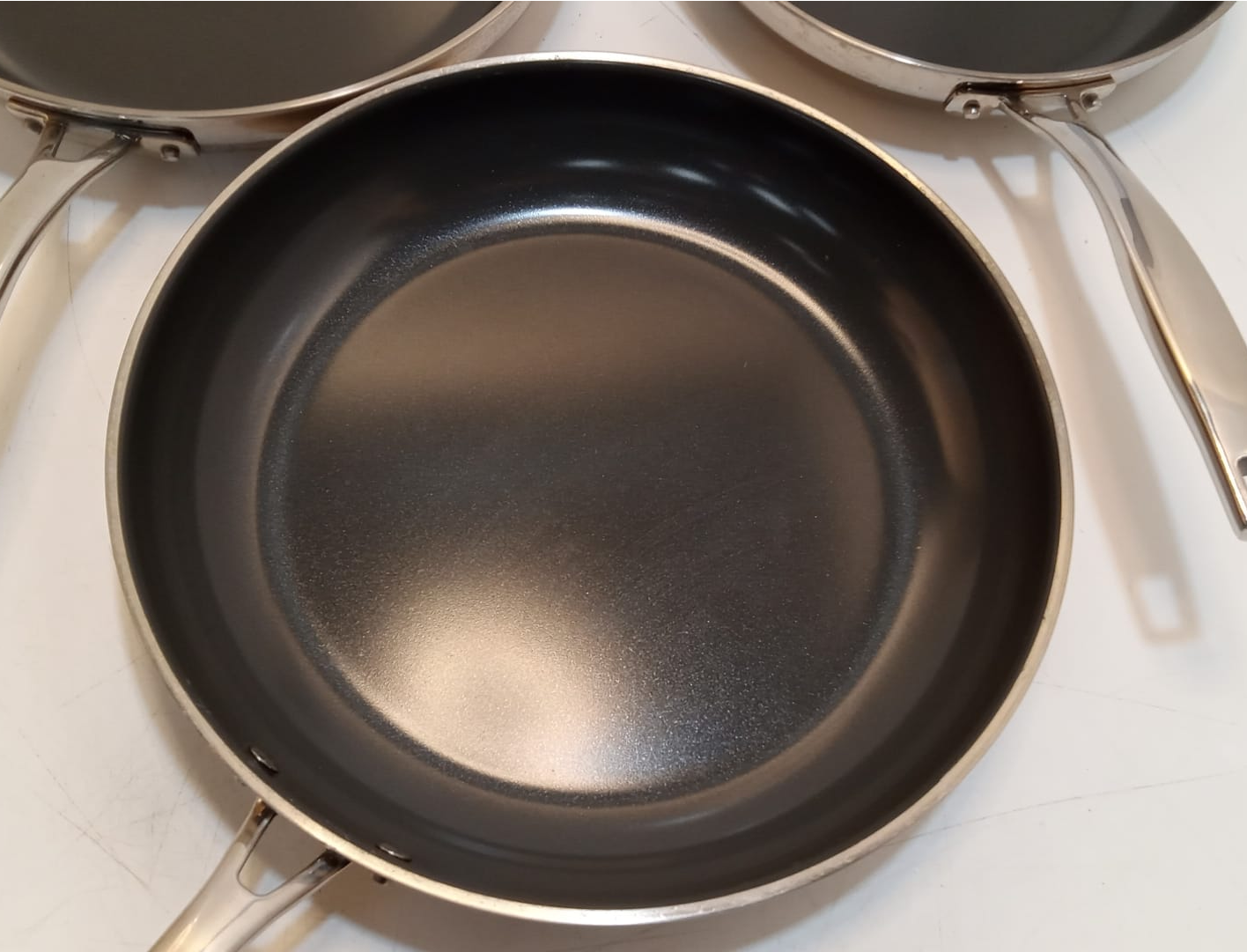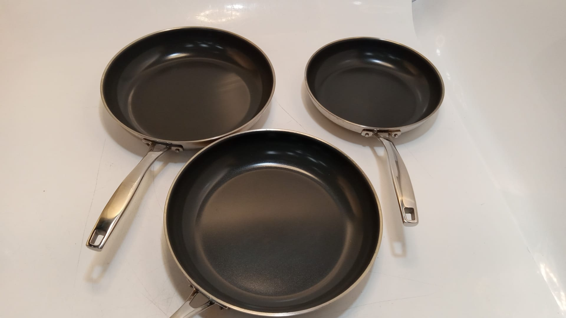 Lot 257 TRAMONTINA 3 PIECE STAINLESS STEEL CERAMIC NON-STICK SKILLET SET -U
