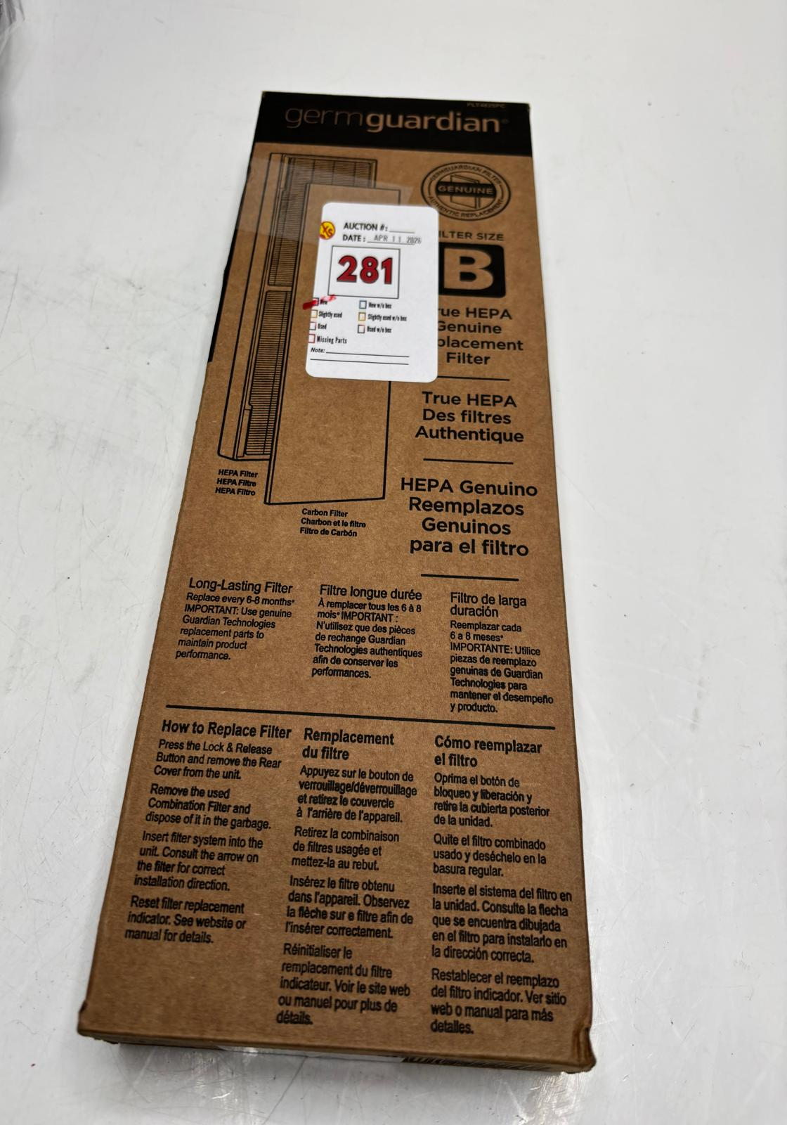 Lot 281 GERMGUARDIAN TRUE HEPA AIR PURIFIER FILTER -N