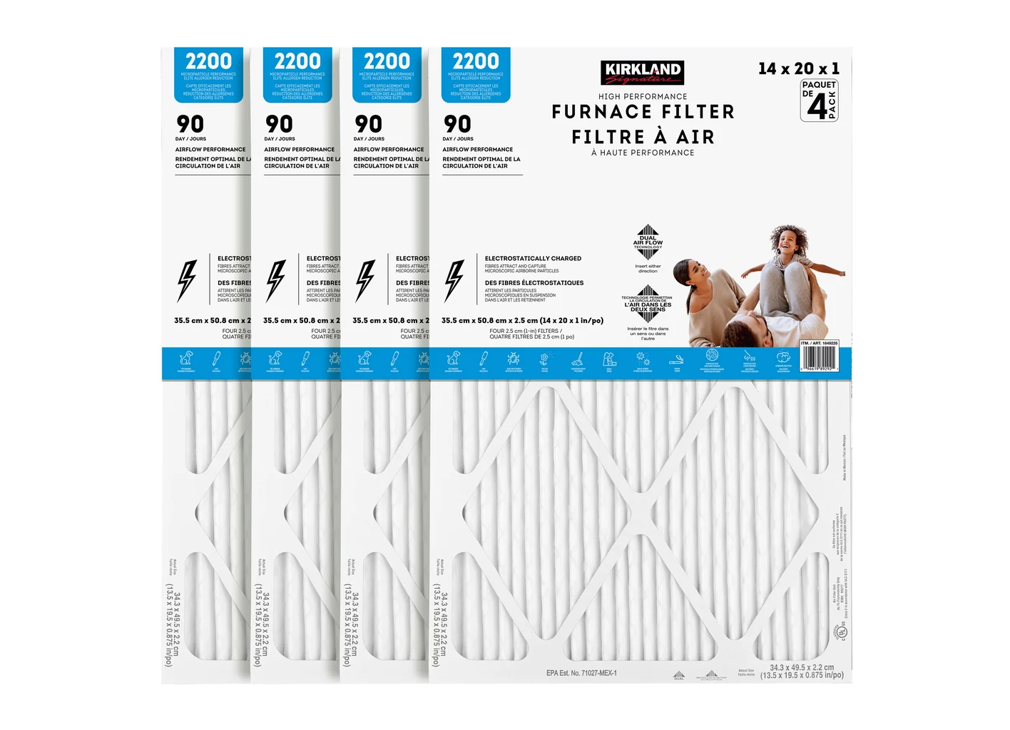 Lot 287 KIRKLAND SIGNATURE 2200 HIGH PERFORMANCE FURNACE FILTERS 40.6 X 63.5 X 2.5 CM -SU