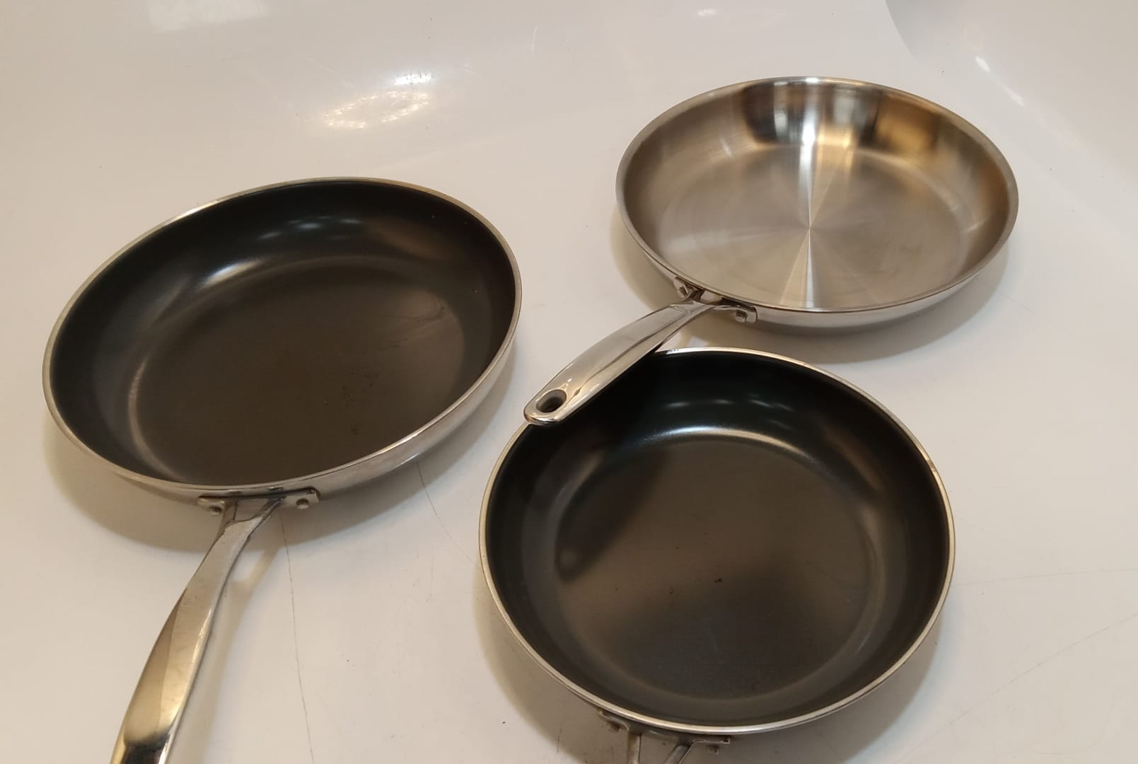 Lot 295 TRAMONTINA/OXO FRYING PAN 3 PIECES -U