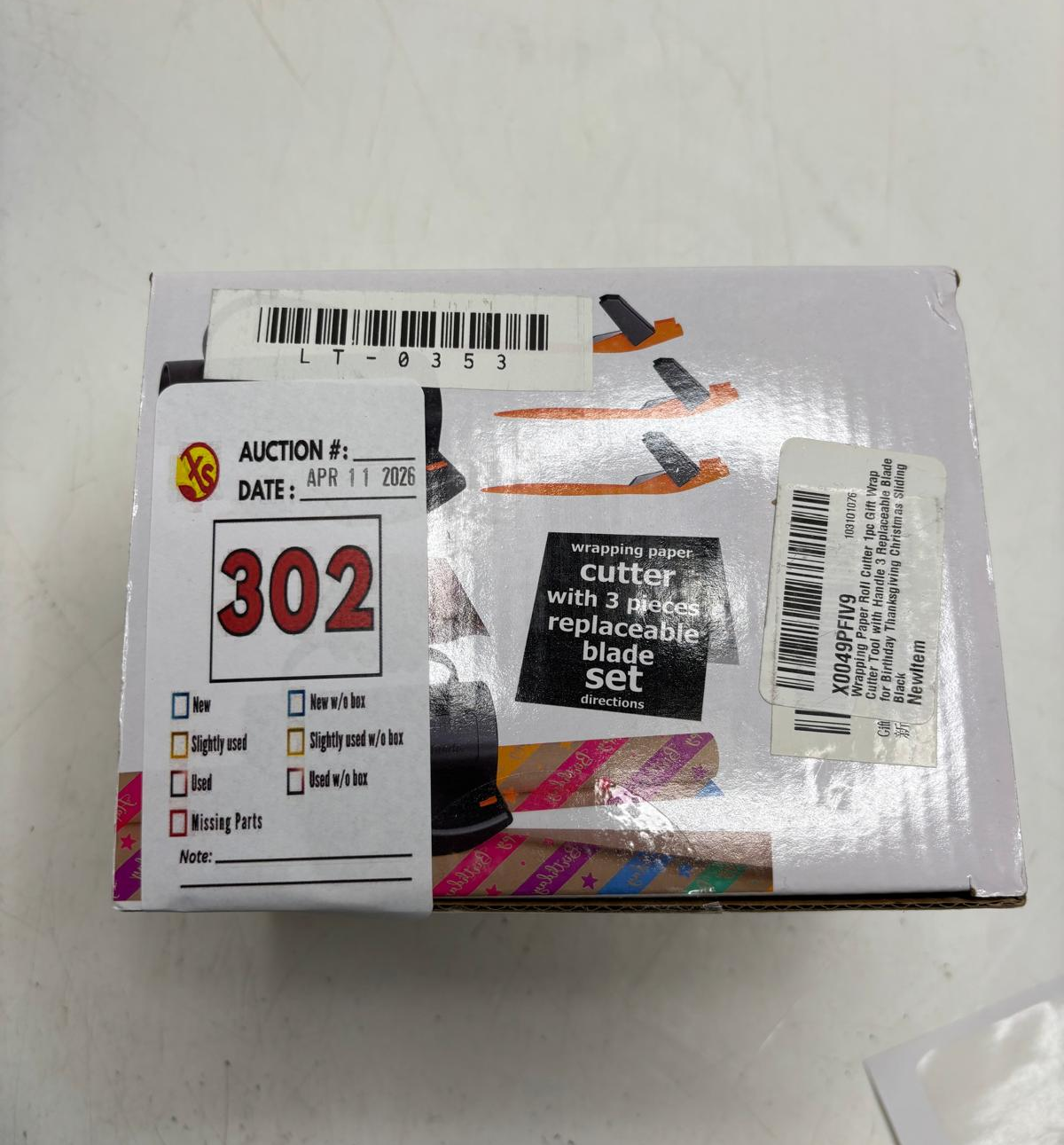 Lot 302 WRAPPING PAPER CUTTER WITH 3 REPLACEABLE BLADE SETS FOR BIRTHDAY -N