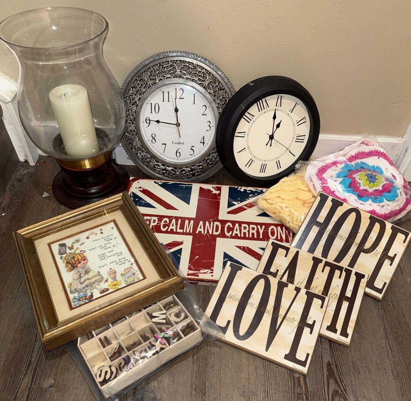 Lot 136 Clocks Candles Crafts & Cute Clever Wall Hangings
