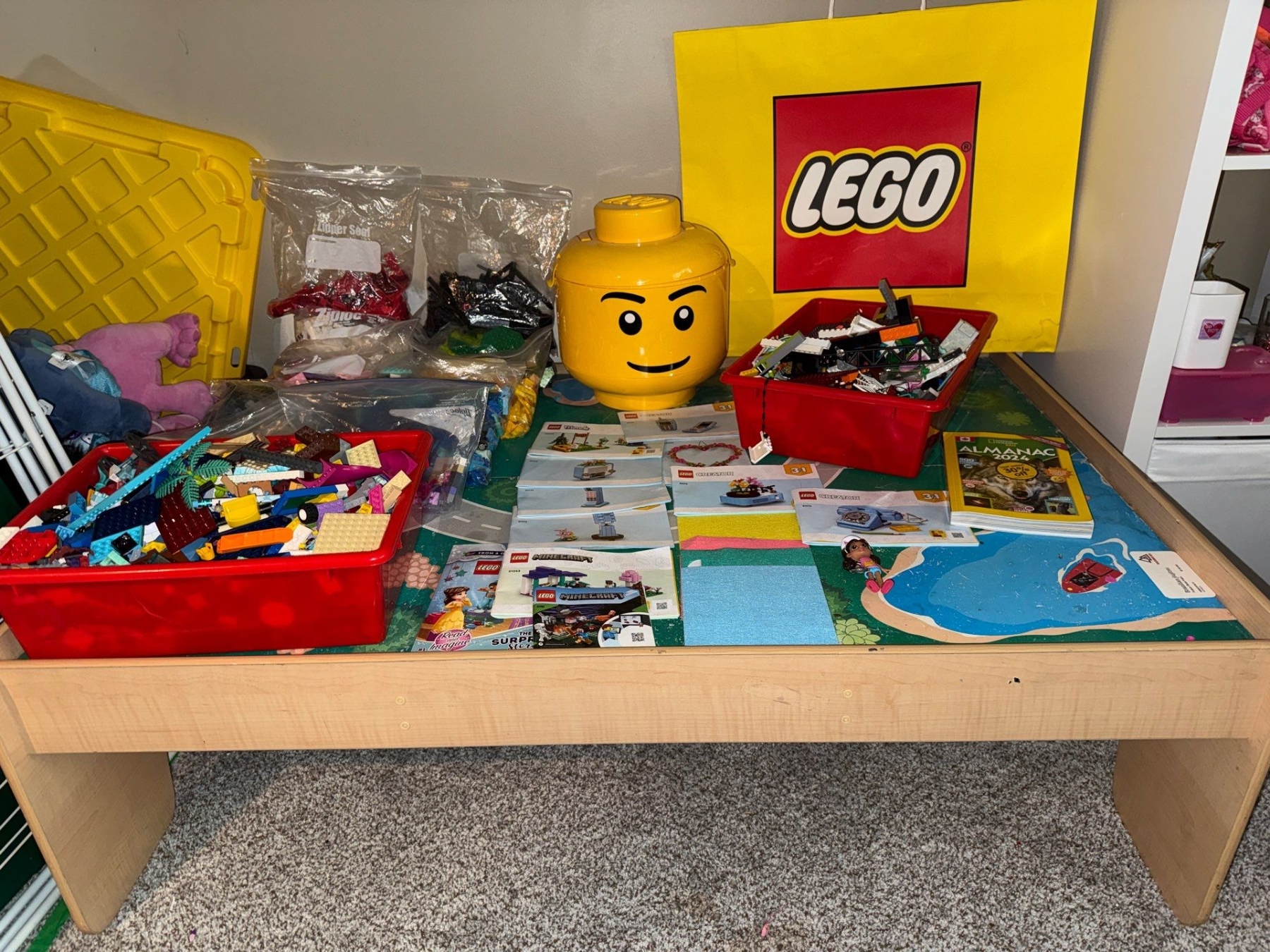 Lot 138 Lego Table w/ Various Lego Buiding Kits & Accessories