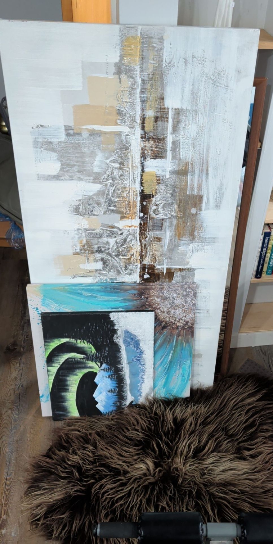 Lot 155 Home Art & Accents - XL Abstract Painting On Canvas Plush Sheep Skin Rug & More
