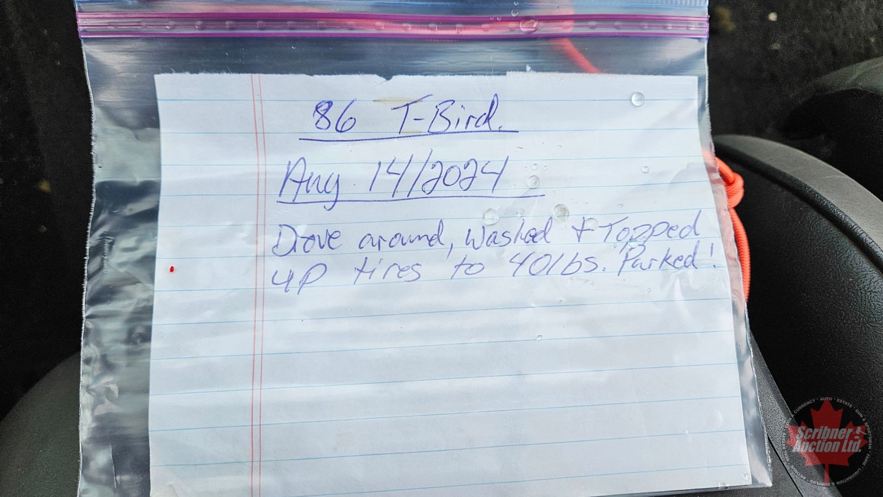 Lot 1002 CAR : 1986 Ford Thunderbird : 2dr