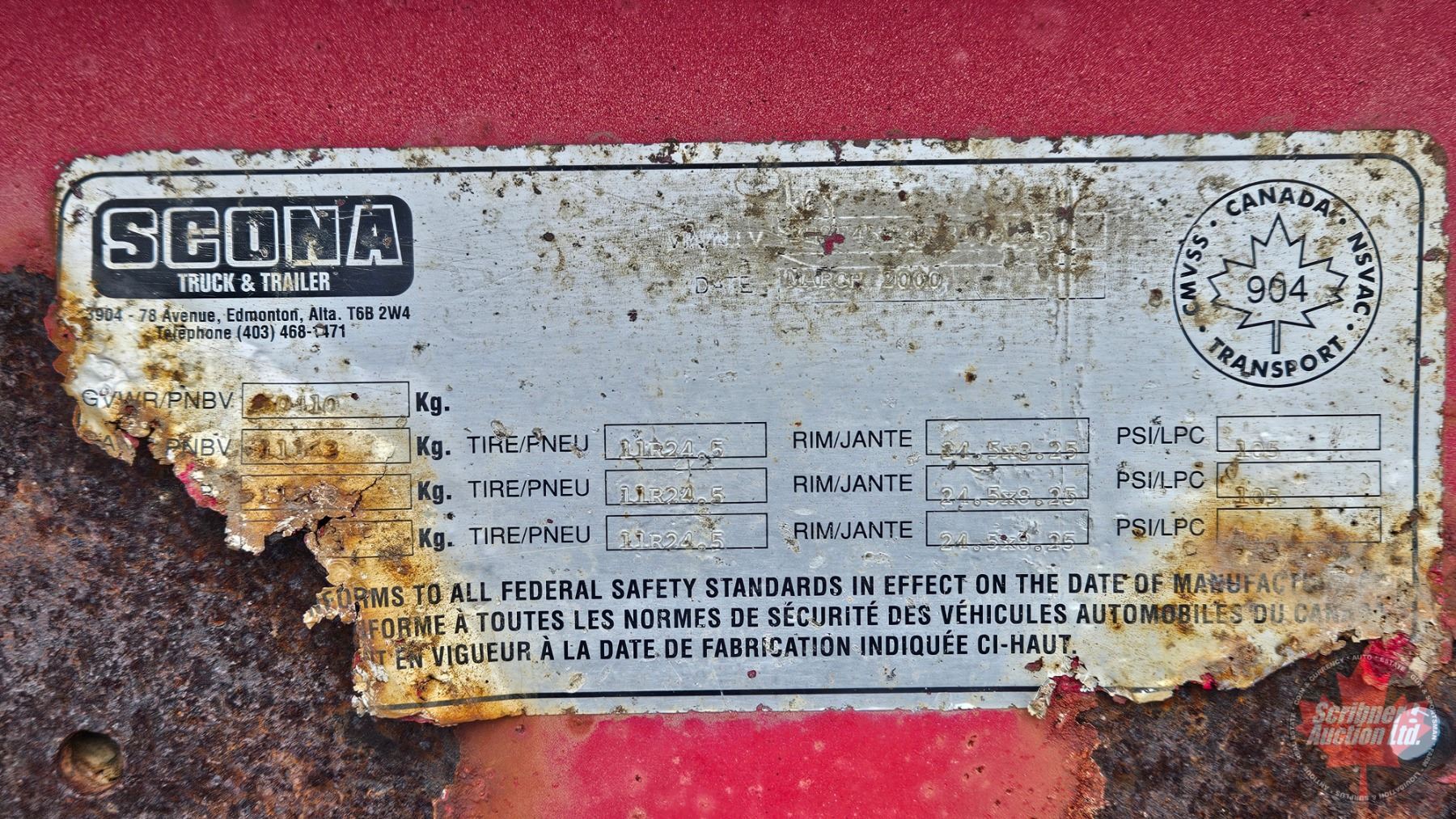 Lot 1010 Commercial Trailer : 2000 Scona T O F : Tri-axle Oilfield Float Trailer : 48ft