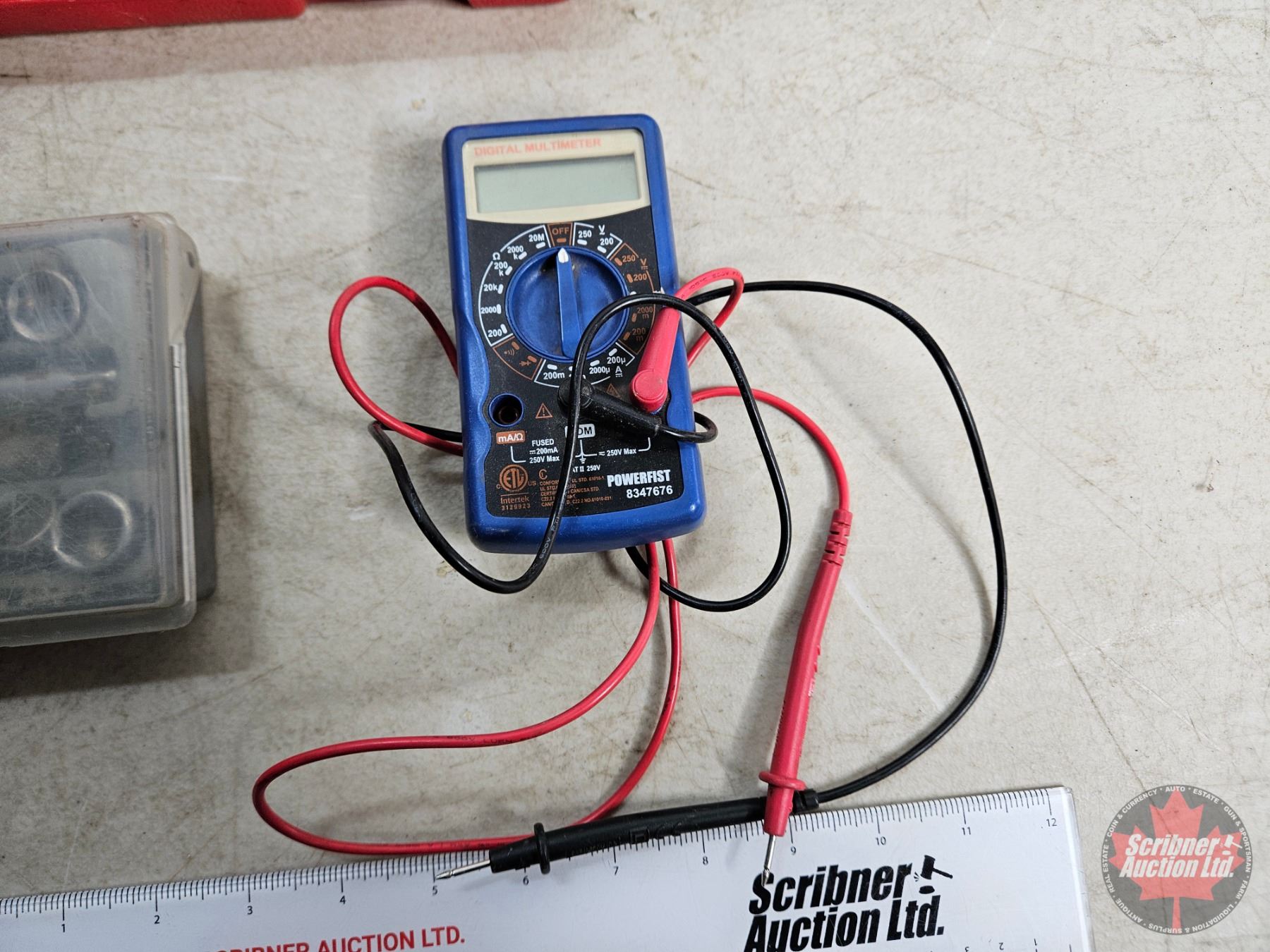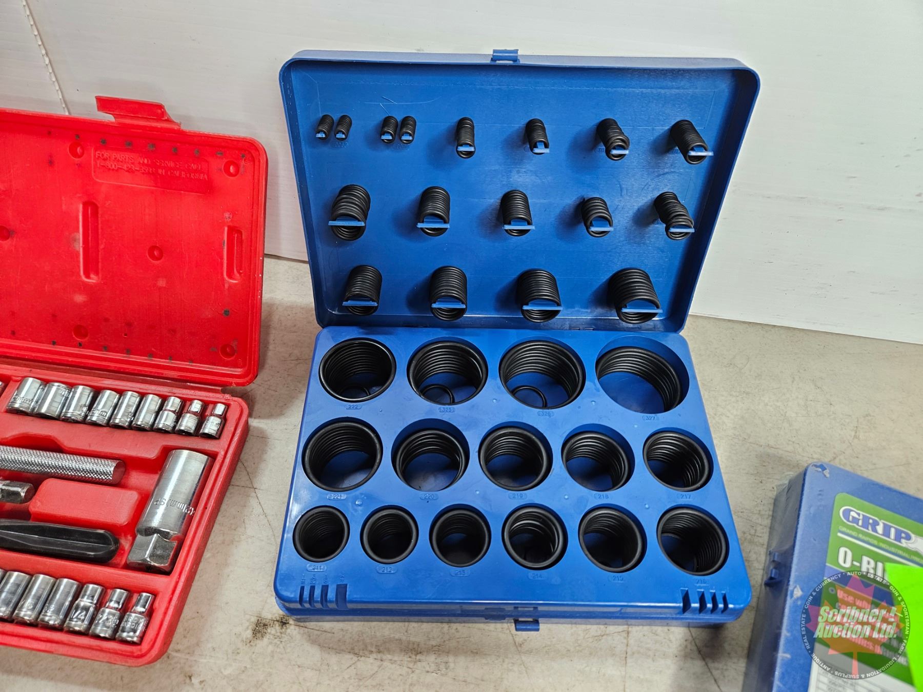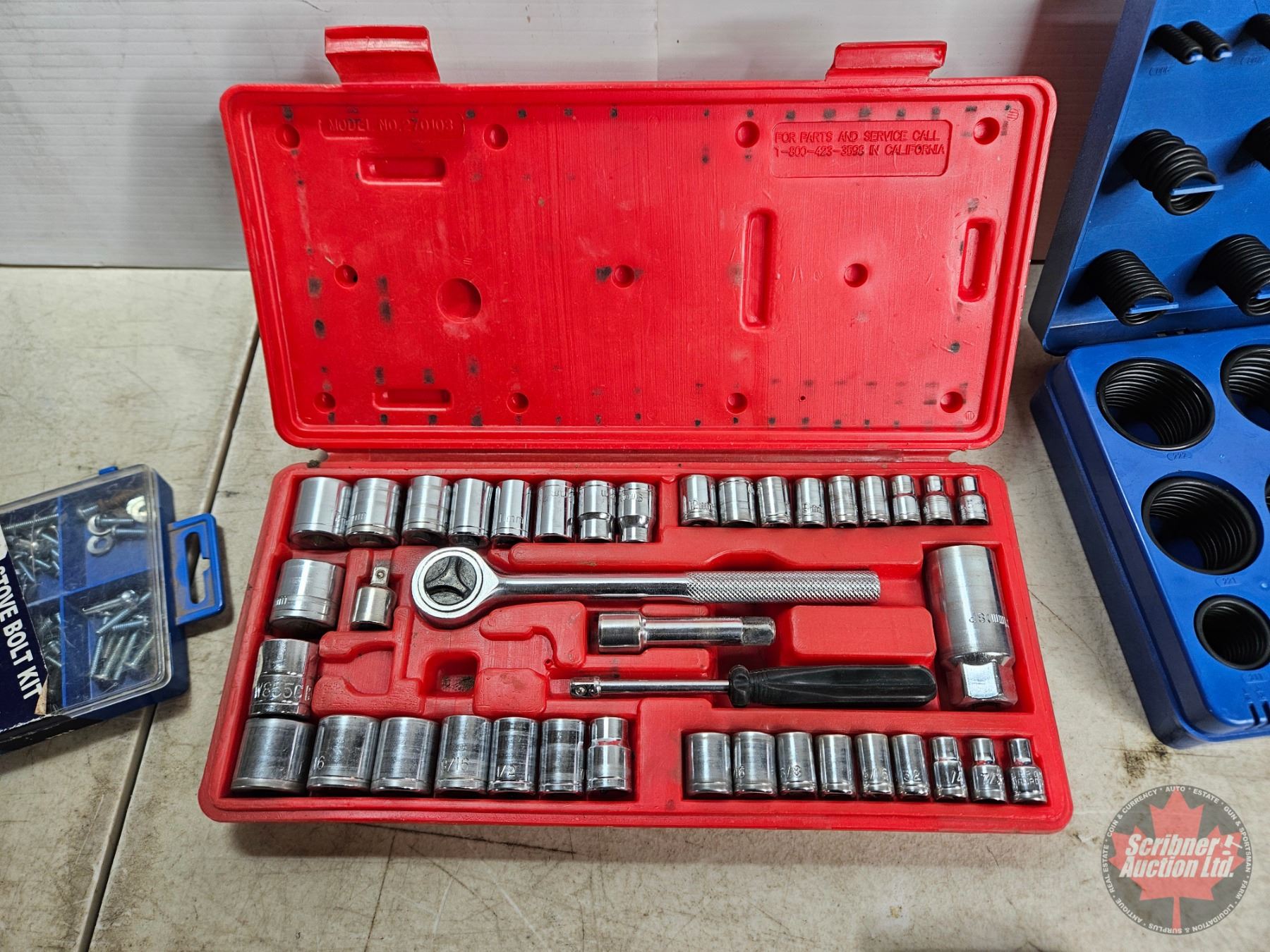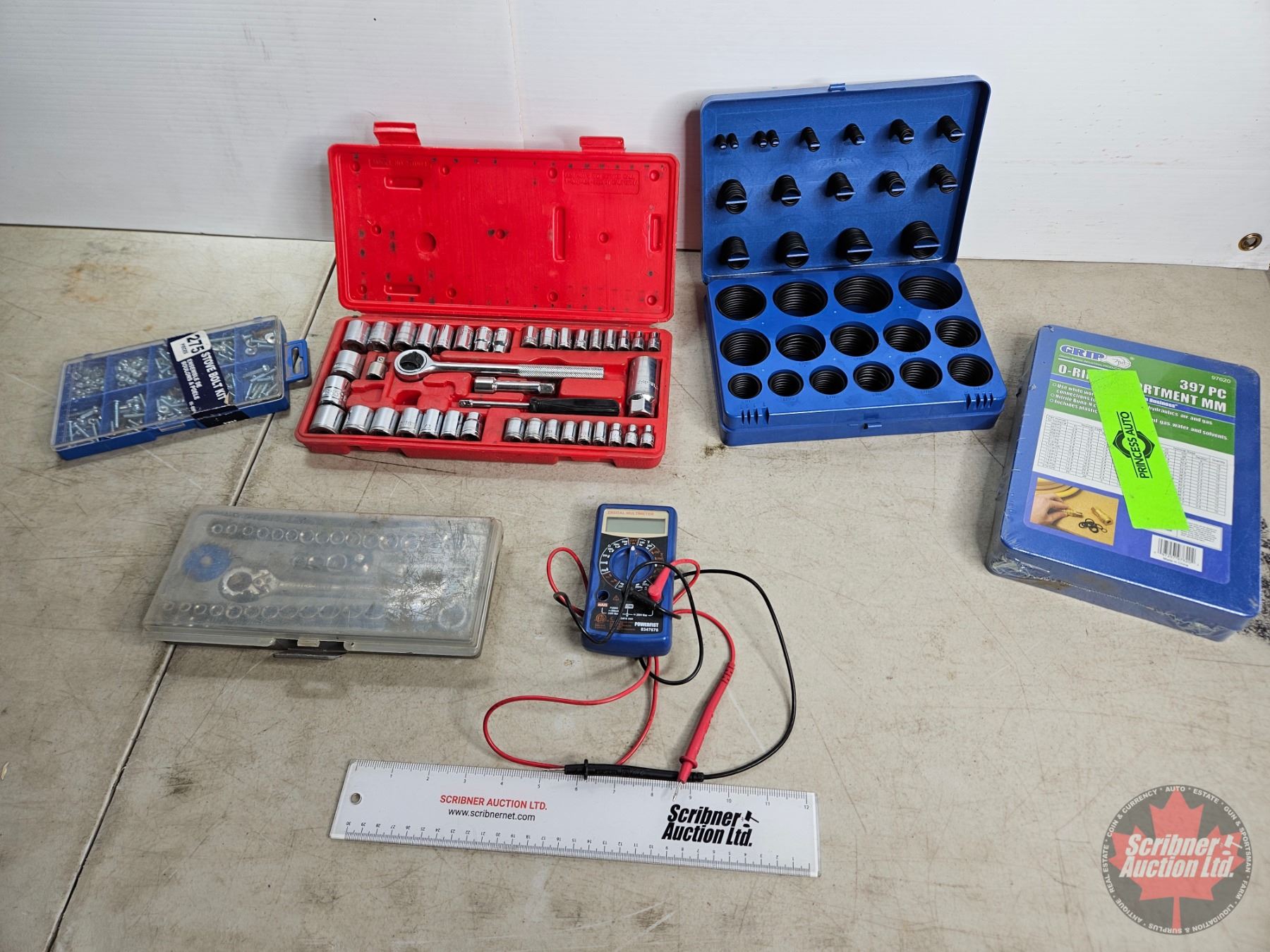 Tool Grouping/Combo : Socket Sets 3/8" & 1/4" Drive (2) ; Digital Multi-Meter; Stove Bolt Kit ; O-Ring Assortments (2)