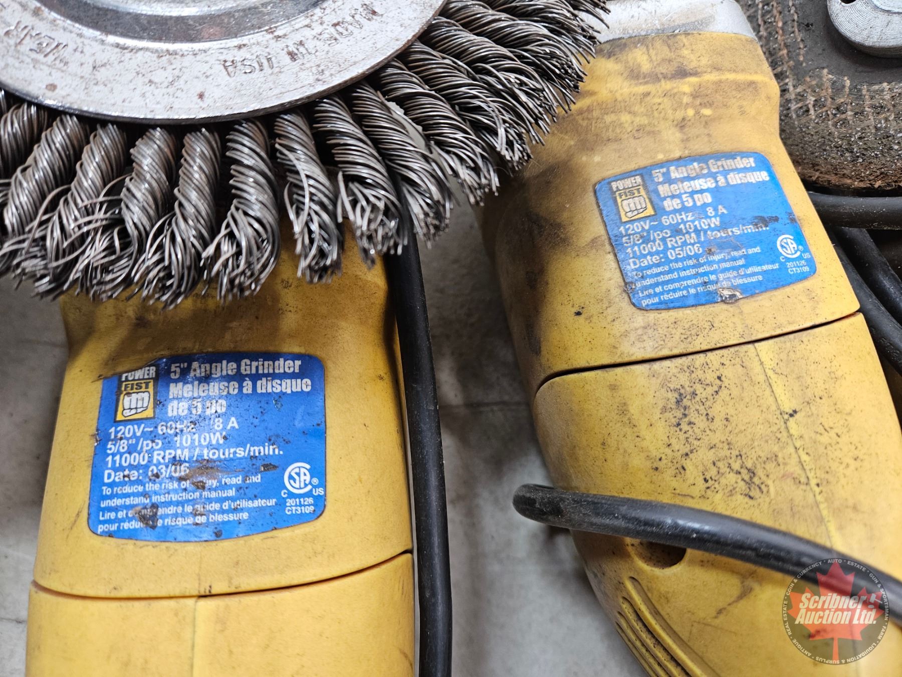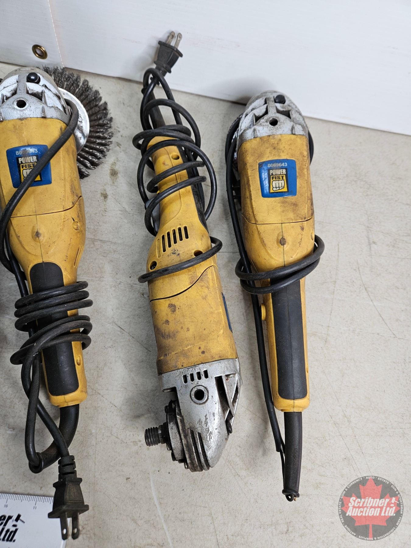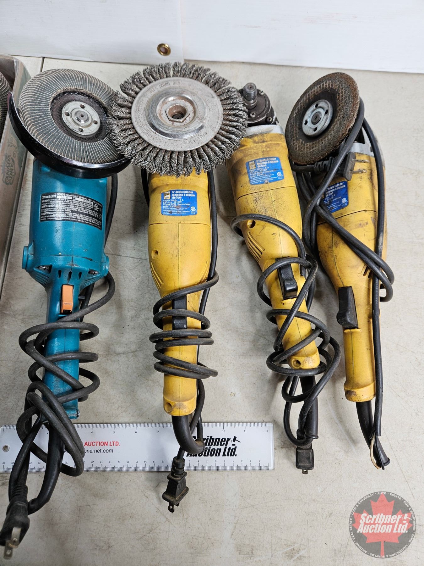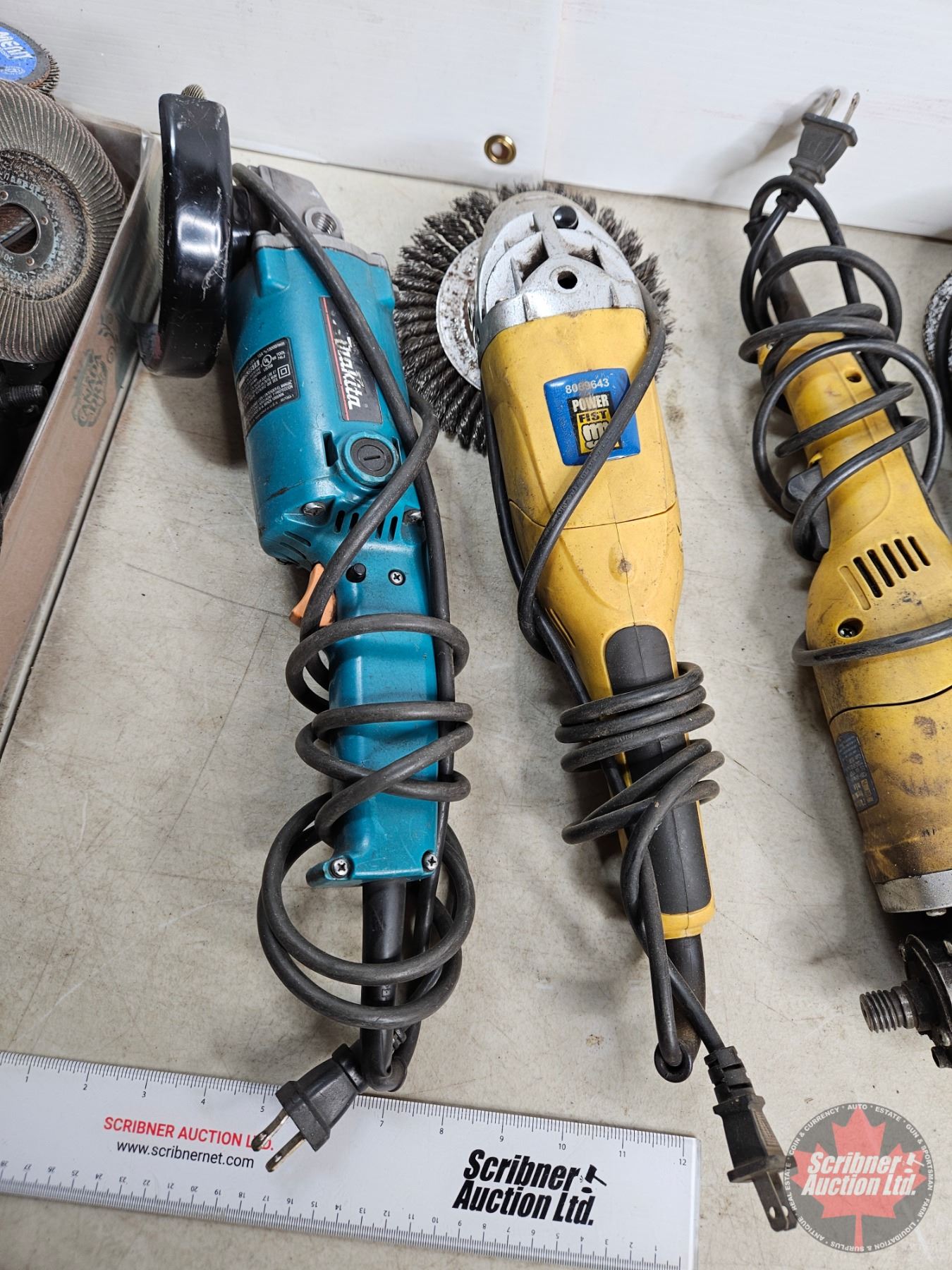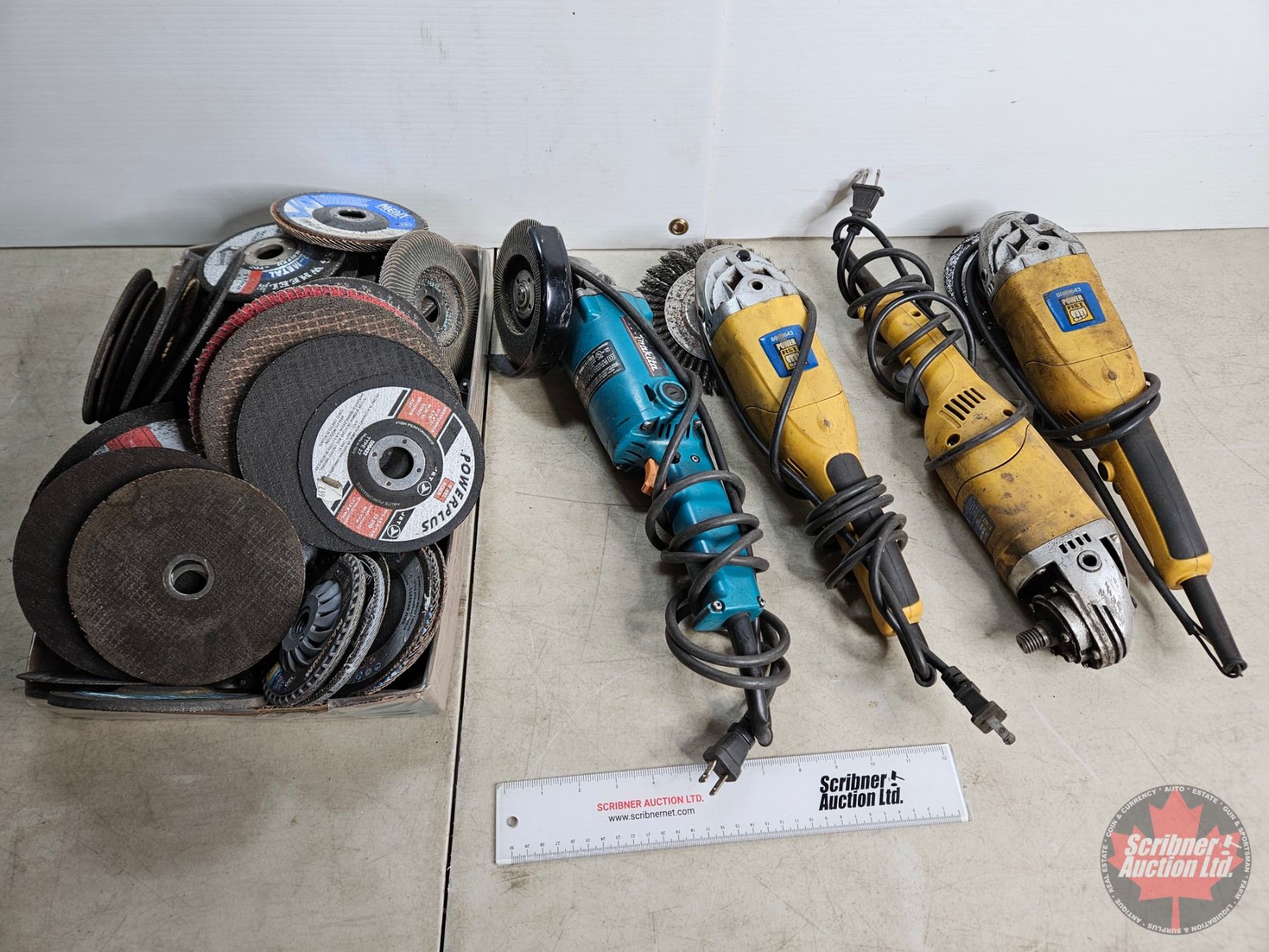 Lot 1054 Angle Grinder Combo/Grouping : - (3) Powerfist - (1) Makita c/w Large Variety of grinding discs