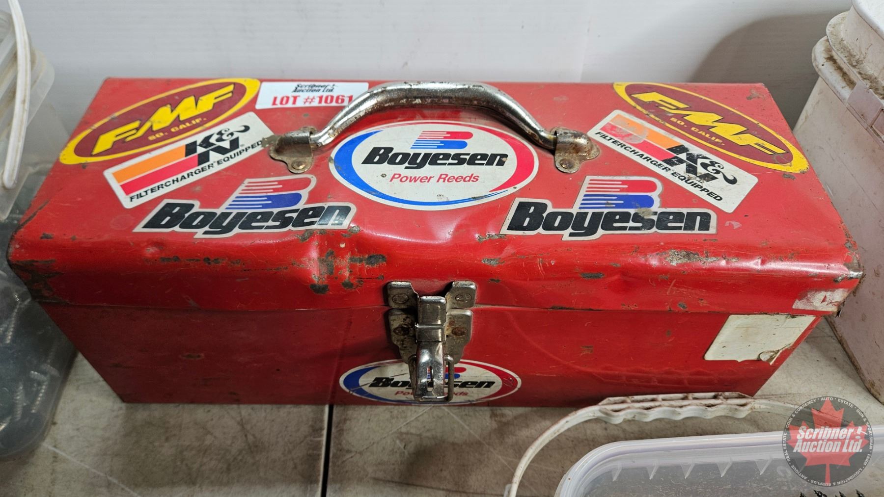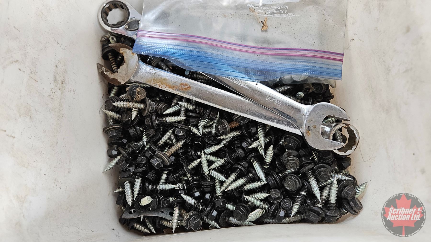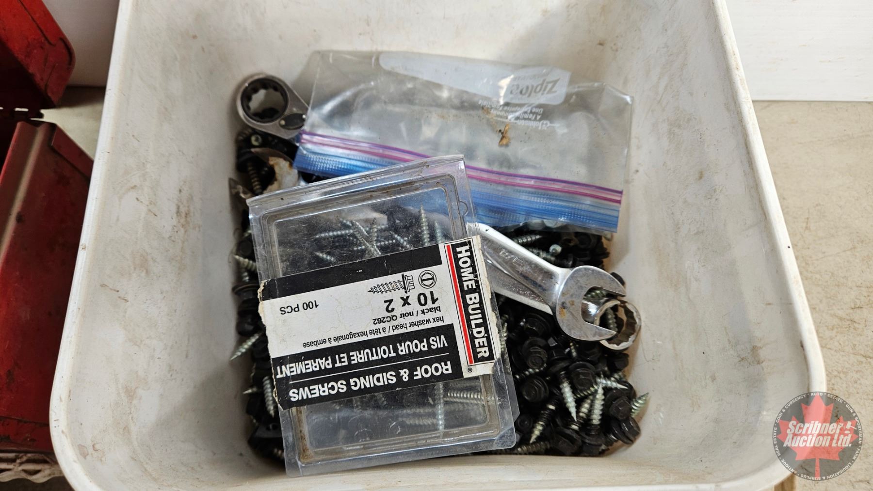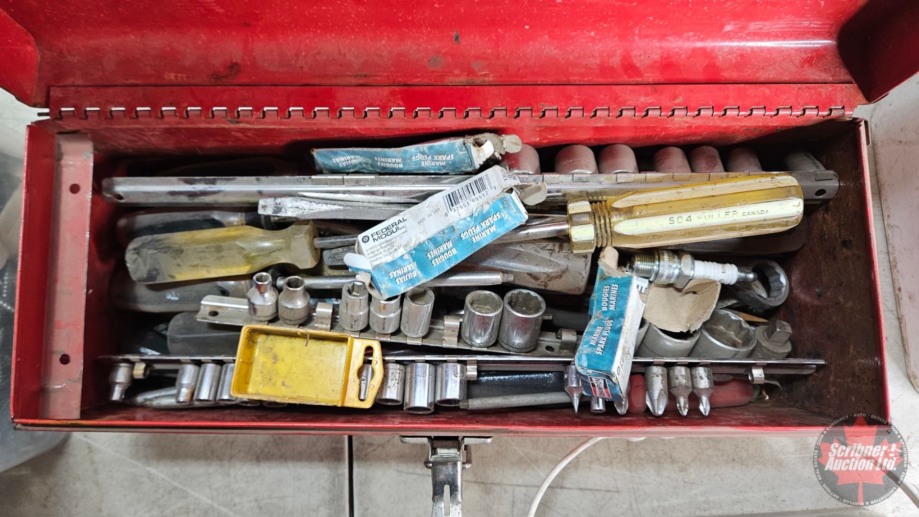 Lot 1061 Variety Grouping/Combo : Drill Bits; Sockets; Wrenches; Screw Drivers; etc + Metal Hand Held Tool Bo