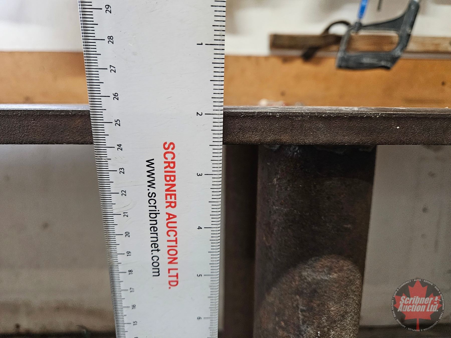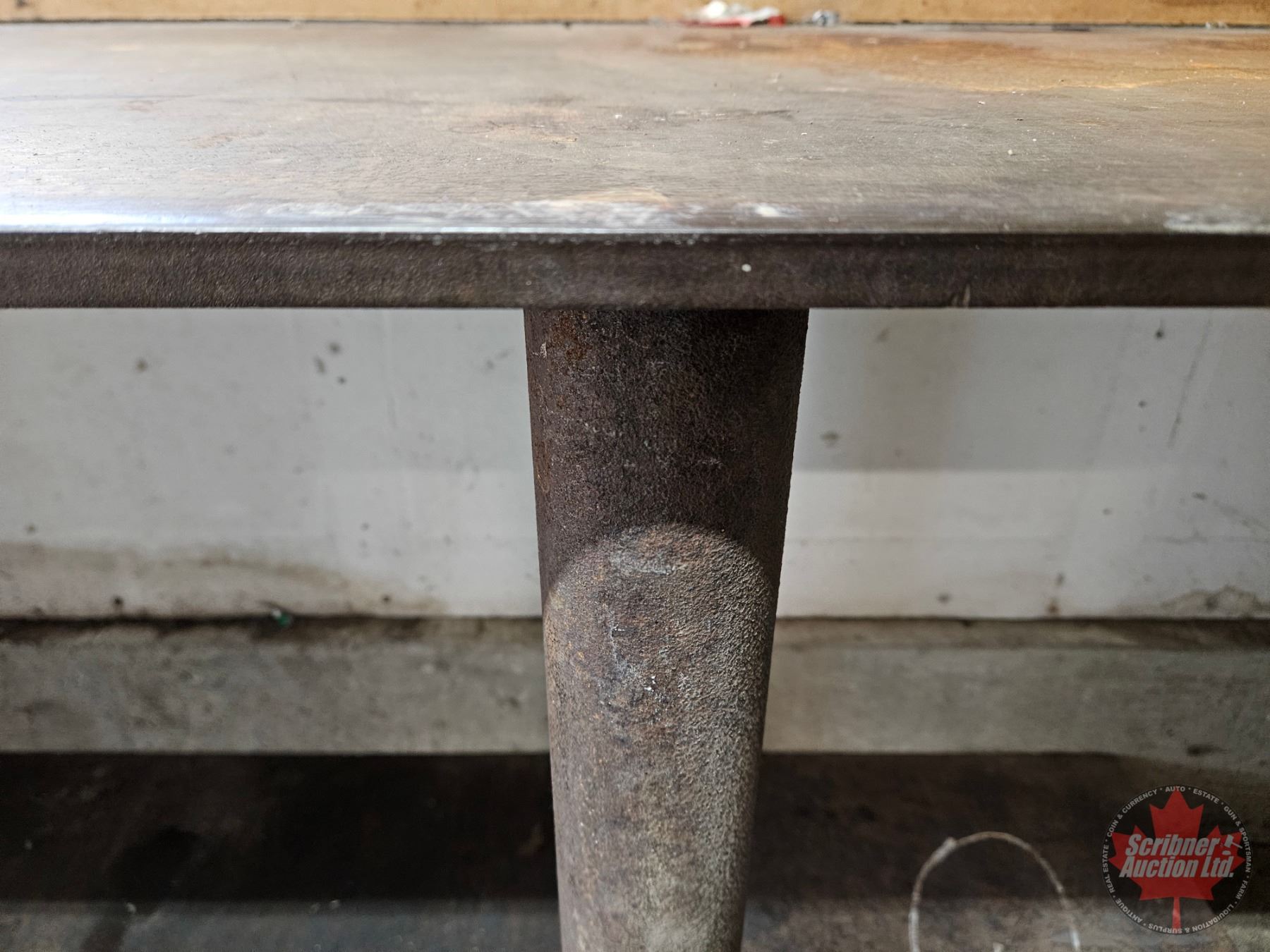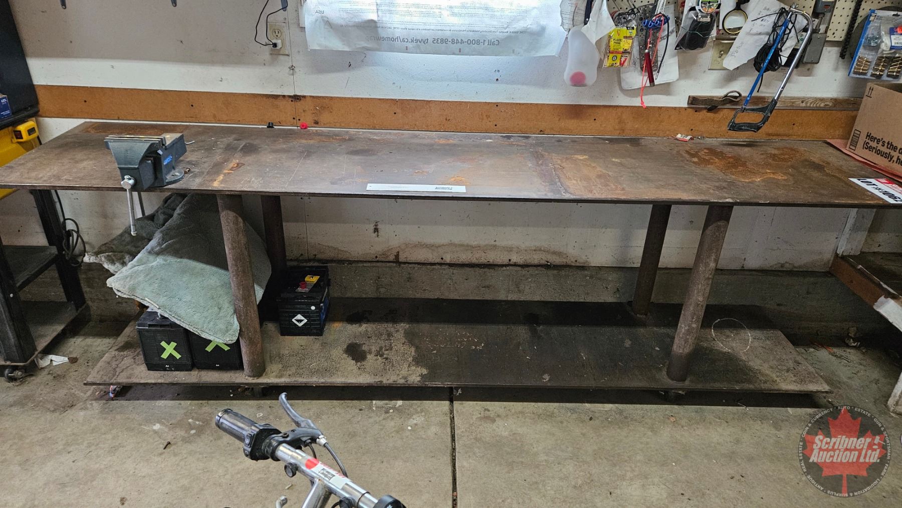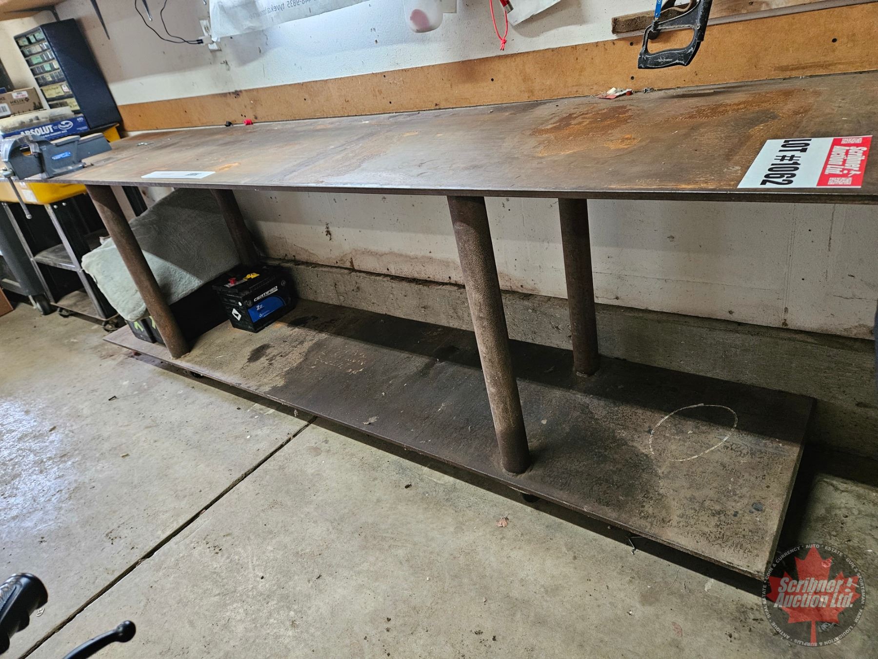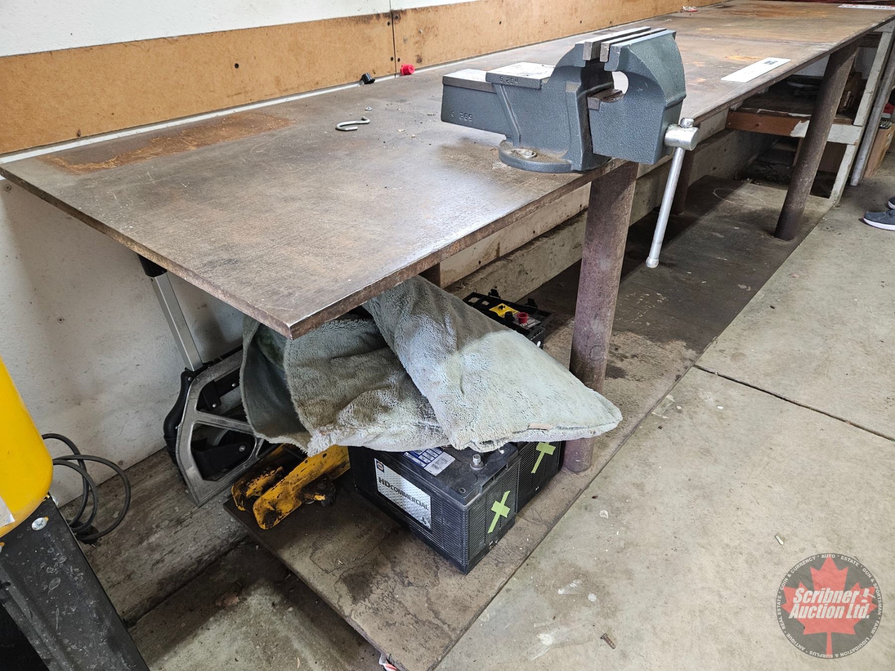Lot 1062 Steel Work Bench w/Vise on Castor Wheels : 1/2" Plate Steel (Top & Bottom Shelves)