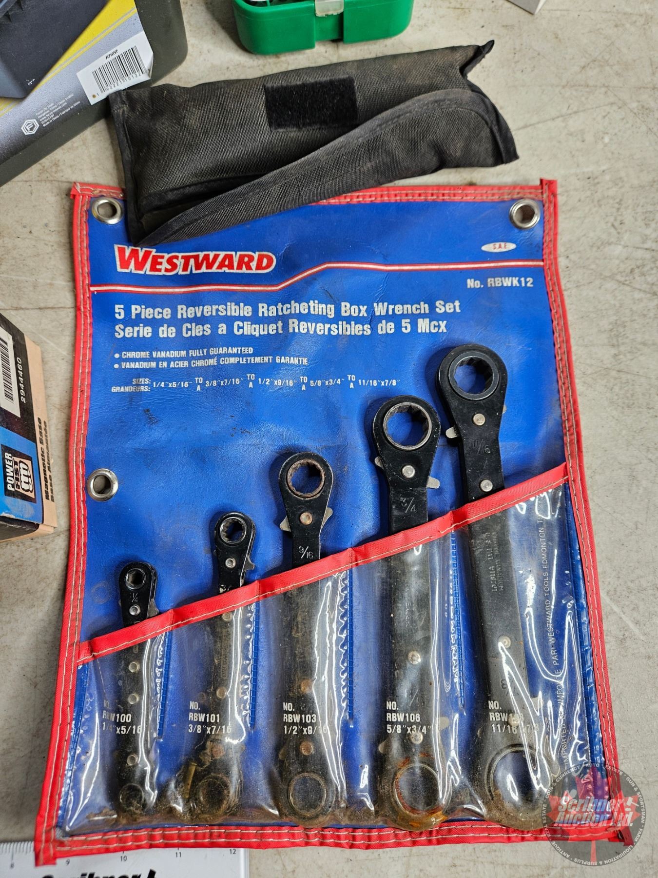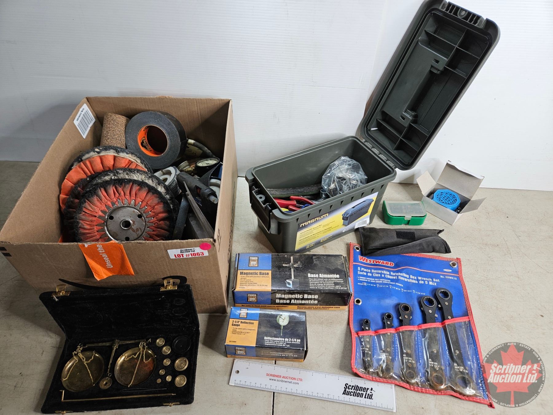 Lot 1063 Large Variety Hand Tools / Shop Supplies / etc : - Wrenches - Pliers - Dial Indicator - Emery Cloth