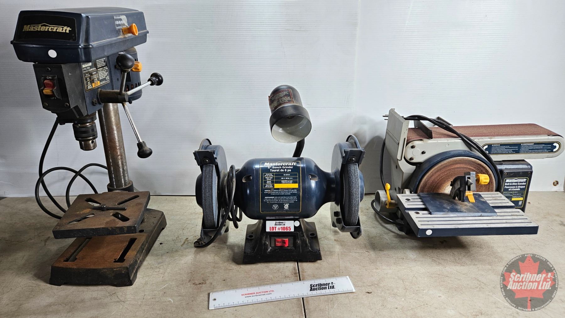 Lot 1065 Shop Tool Combo/Group (3): - 8" Drill Press - 8" Bench Grinder - Belt & Disc Sander