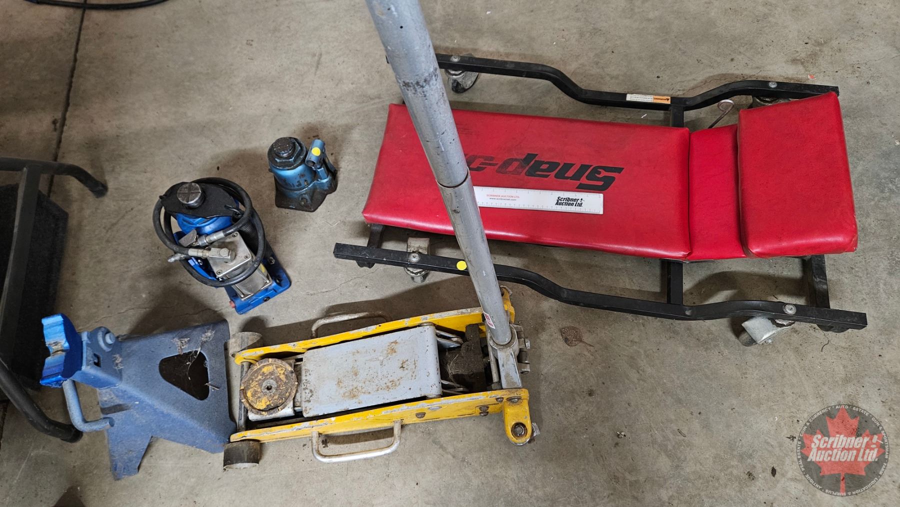 Combo: Snap-On Creeper ; Jack Stand; Bottle Jack; Air over Hydraulic Jack