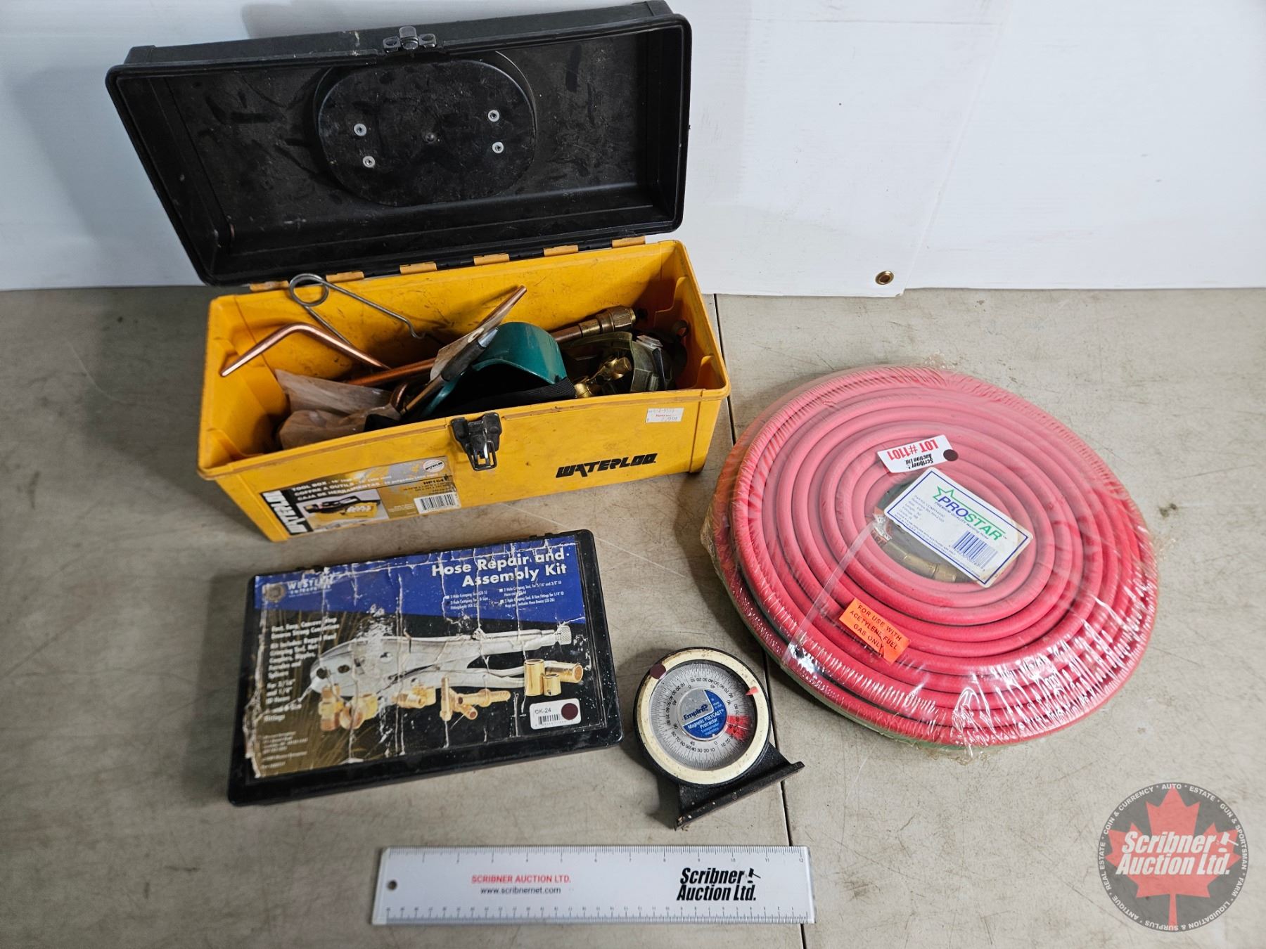 Combo: Cutting Torch Ends & Accessories ; Hose Repair & Assembly Kit ; Oxygen/Acetylene Hose (New) ; Magnetic Protractor