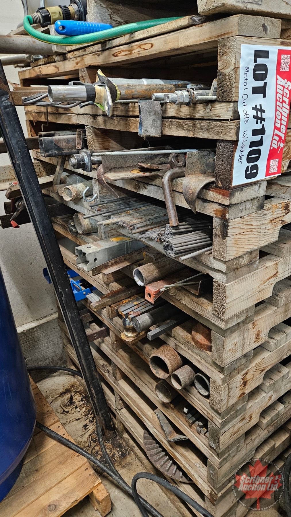 Lot 1109 Combo : Aluminum Ladder 7ft & Large Variety of Short Length Cut Off Metal Stock