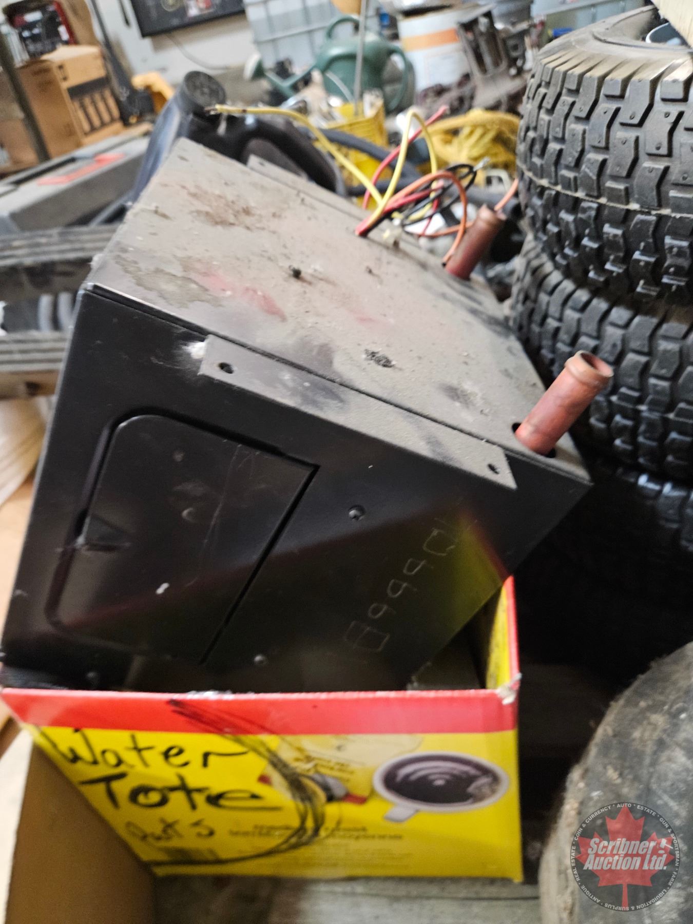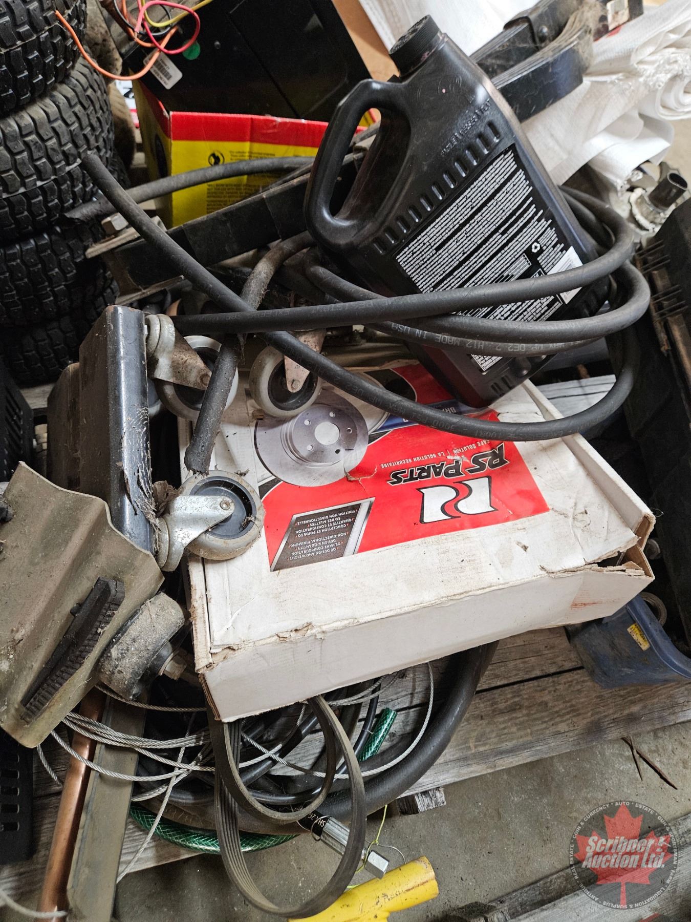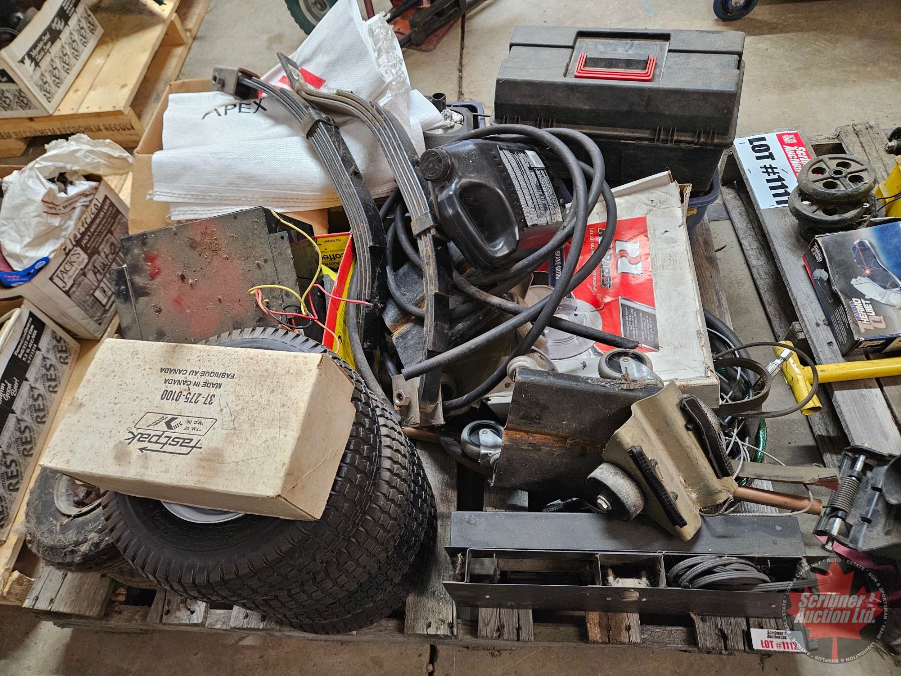 Lot 1112 Pallet Lot : Variety of Fittings ; Leaf Springs; Small Tires; Bus Heater; etc