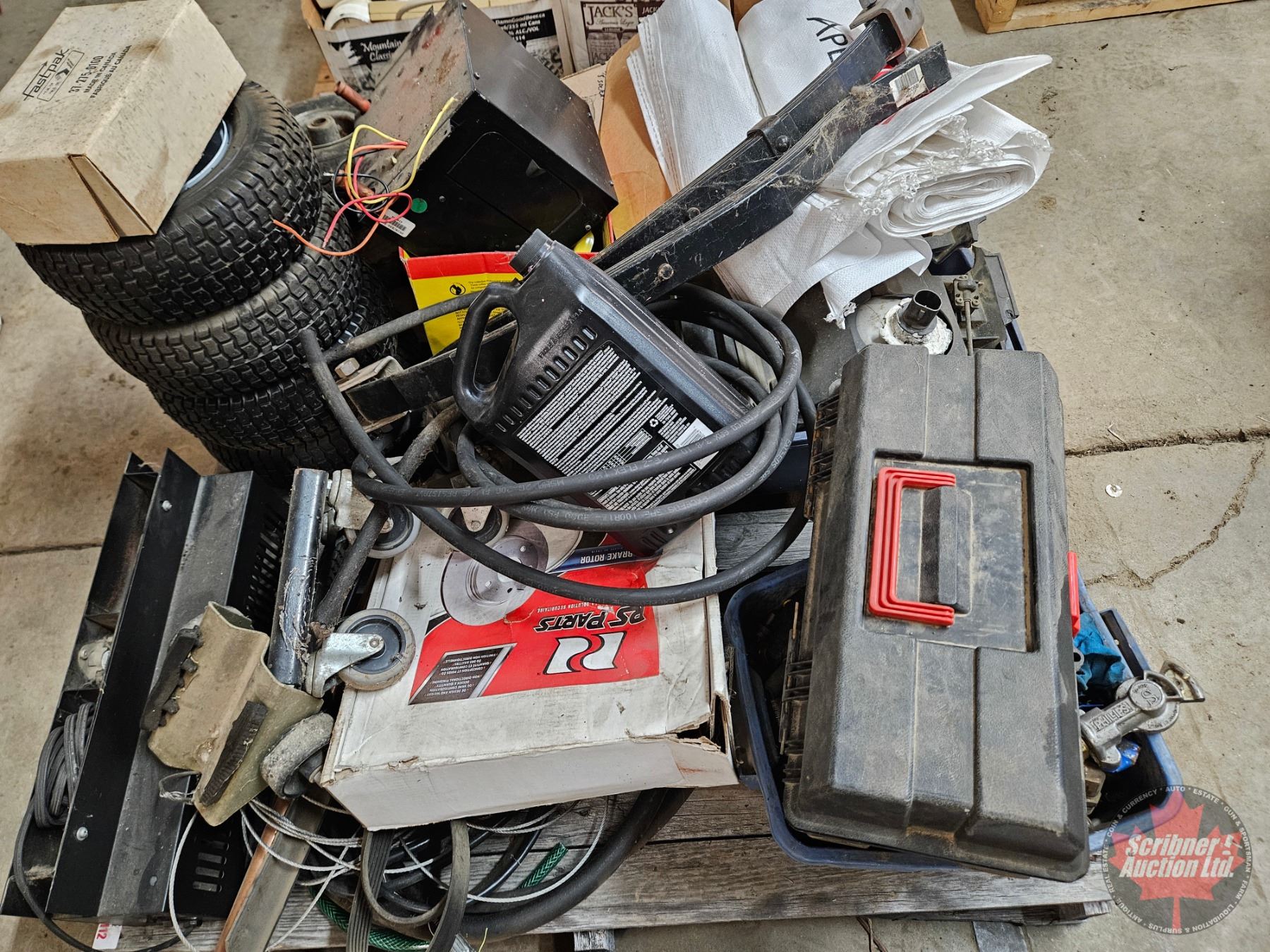 Pallet Lot : Variety of Fittings ; Leaf Springs; Small Tires; Bus Heater; etc