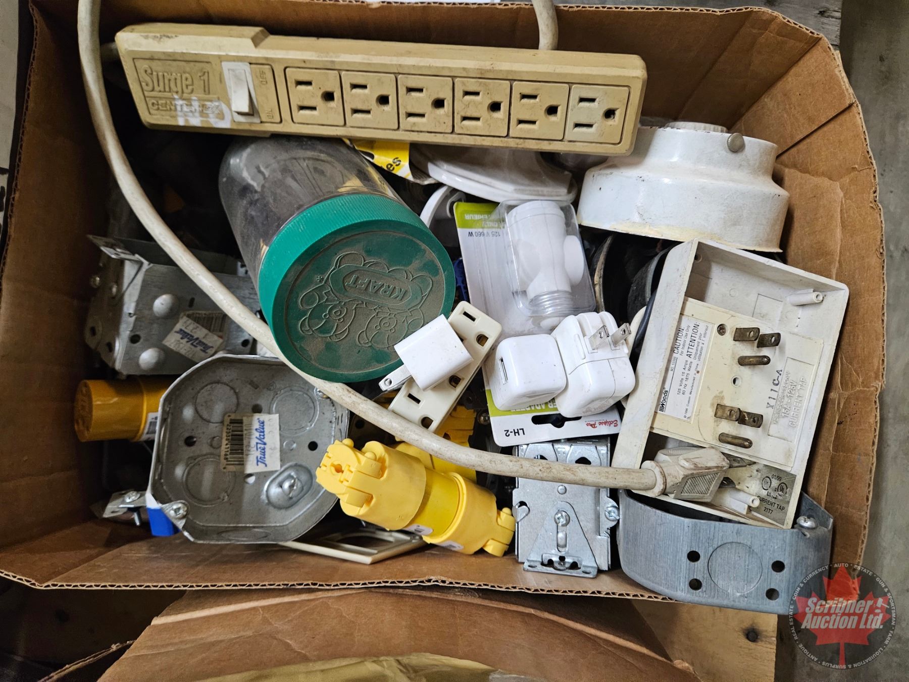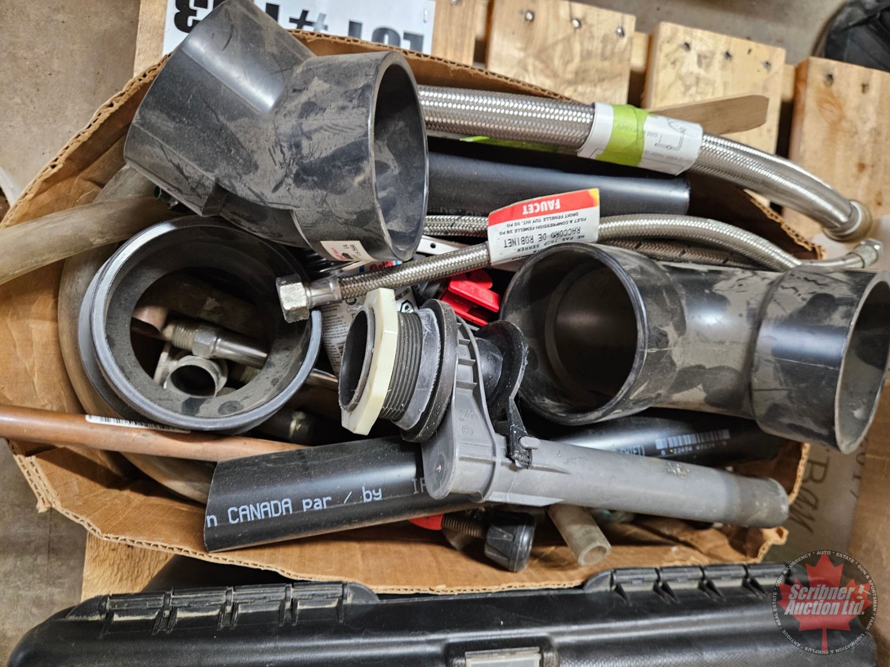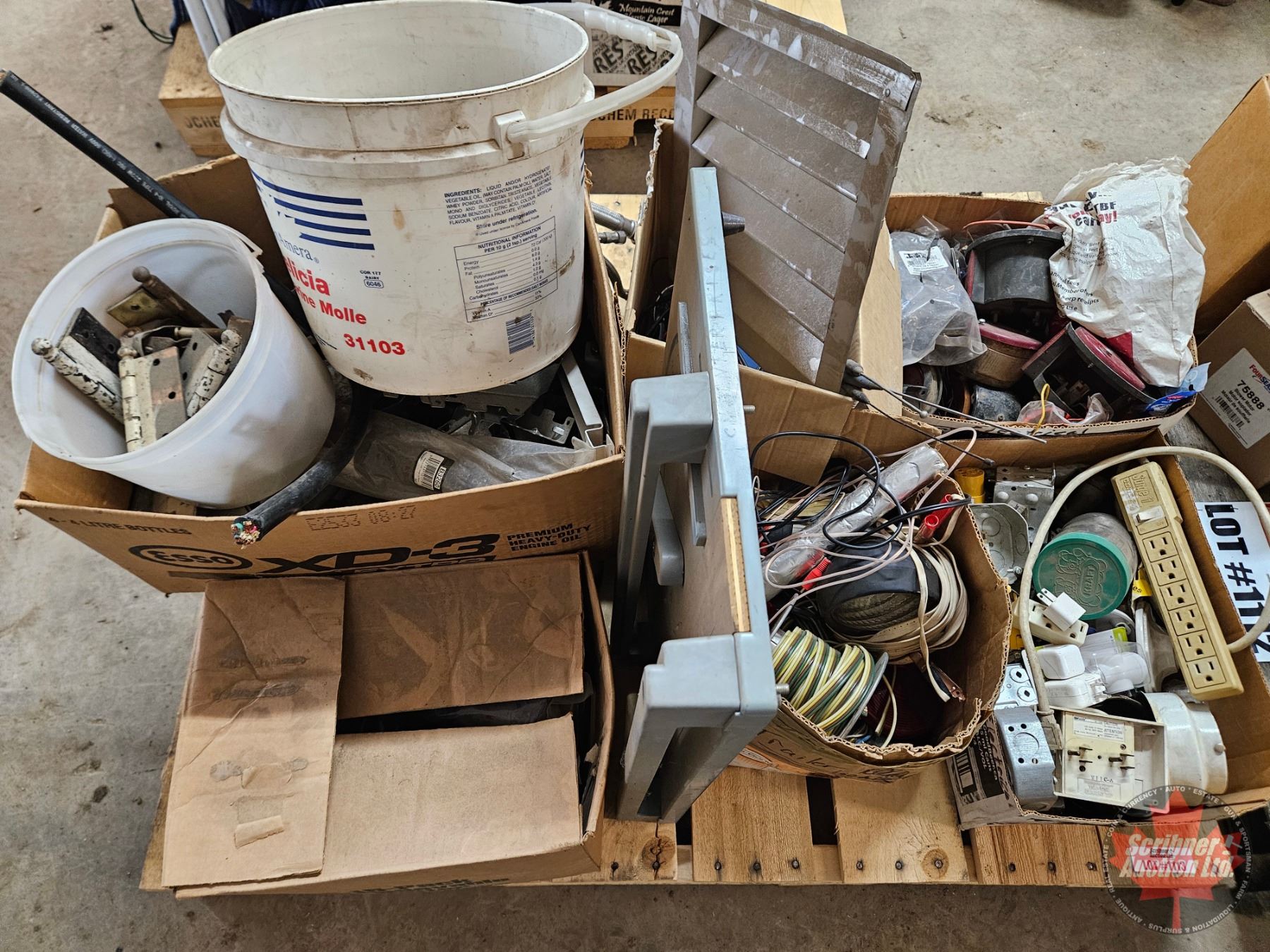 Pallet Lot: Variety of Plumbing / Electrical (12v / 110v) ; Joist Hangers; Hinges