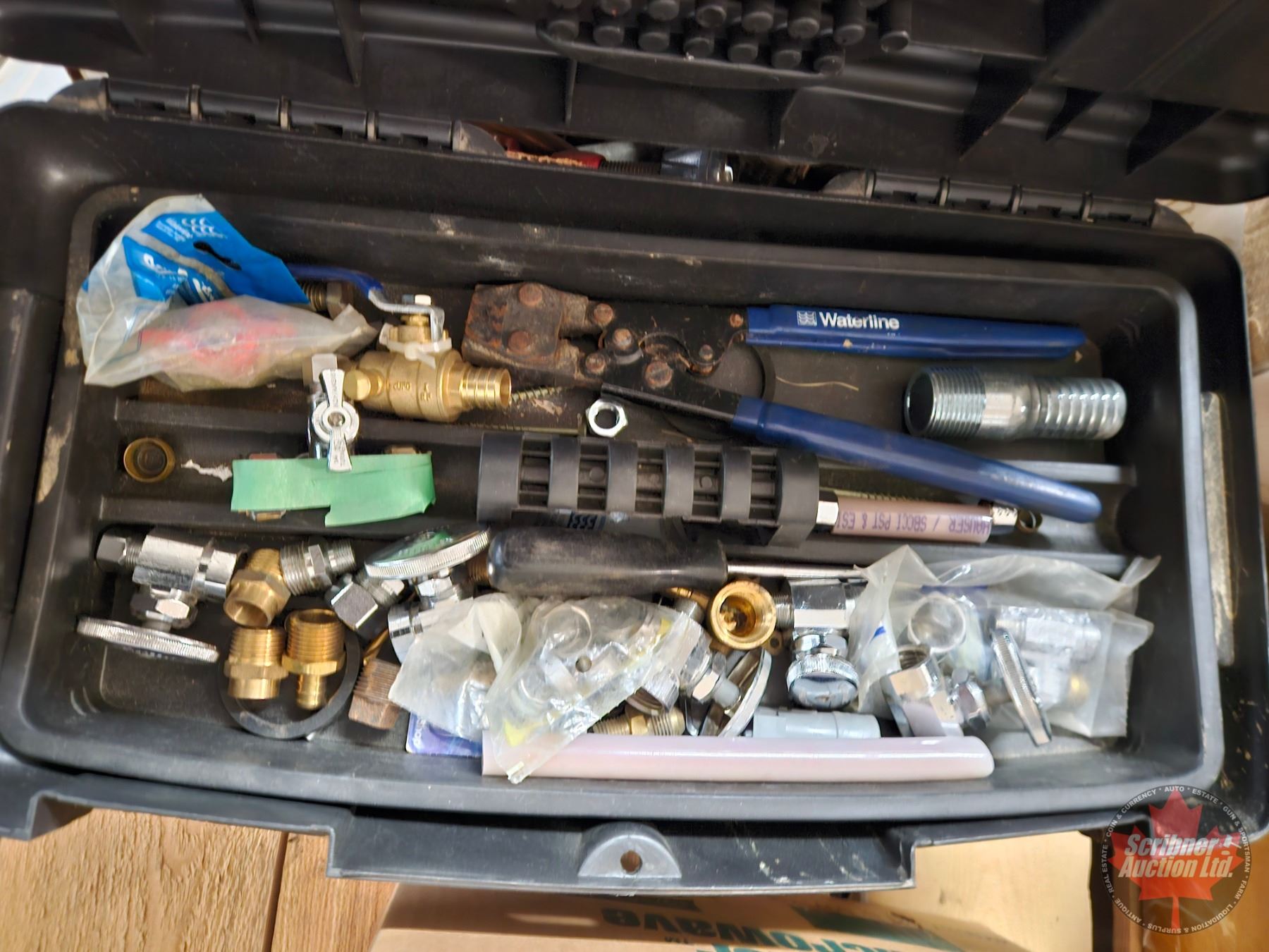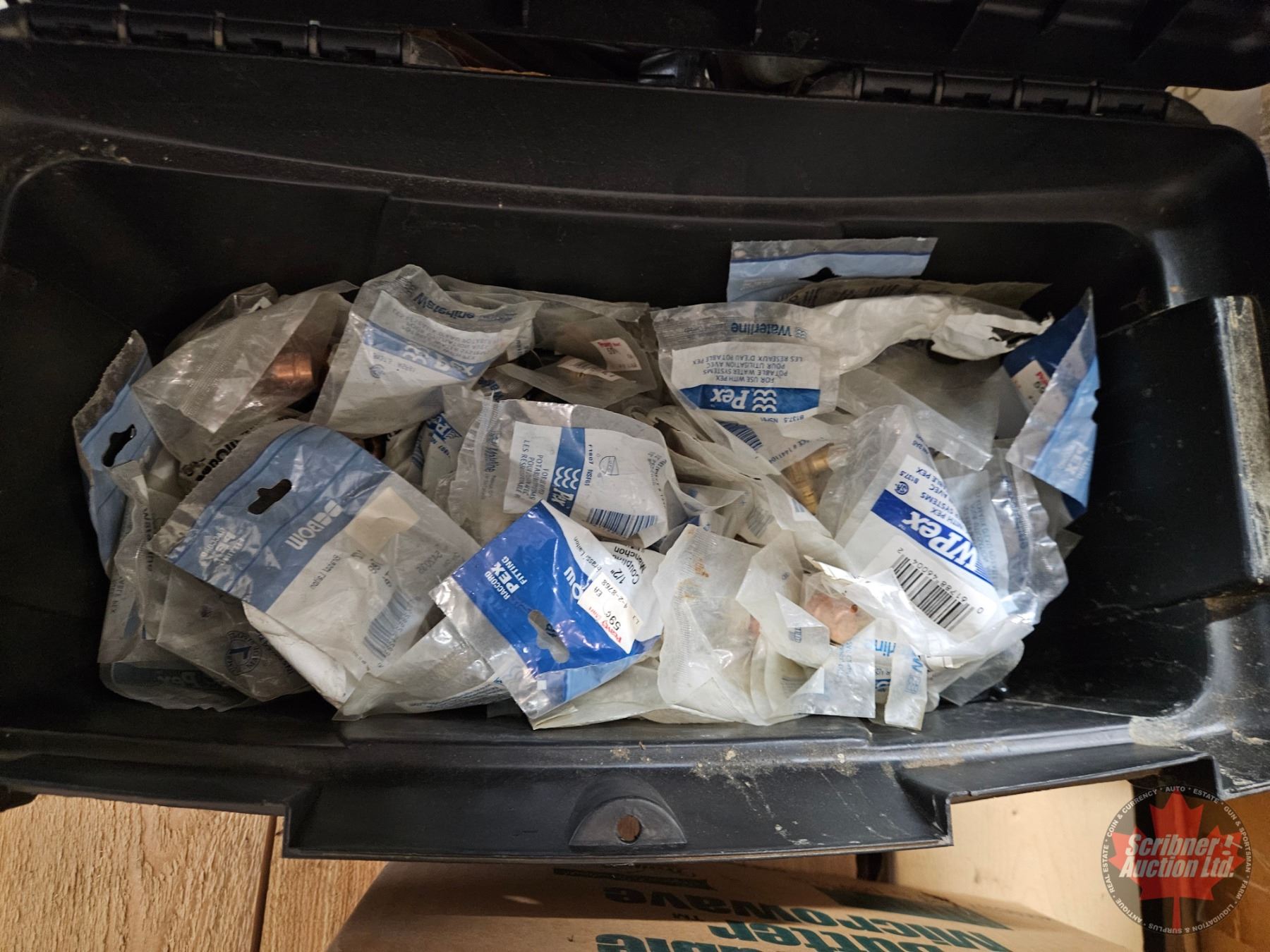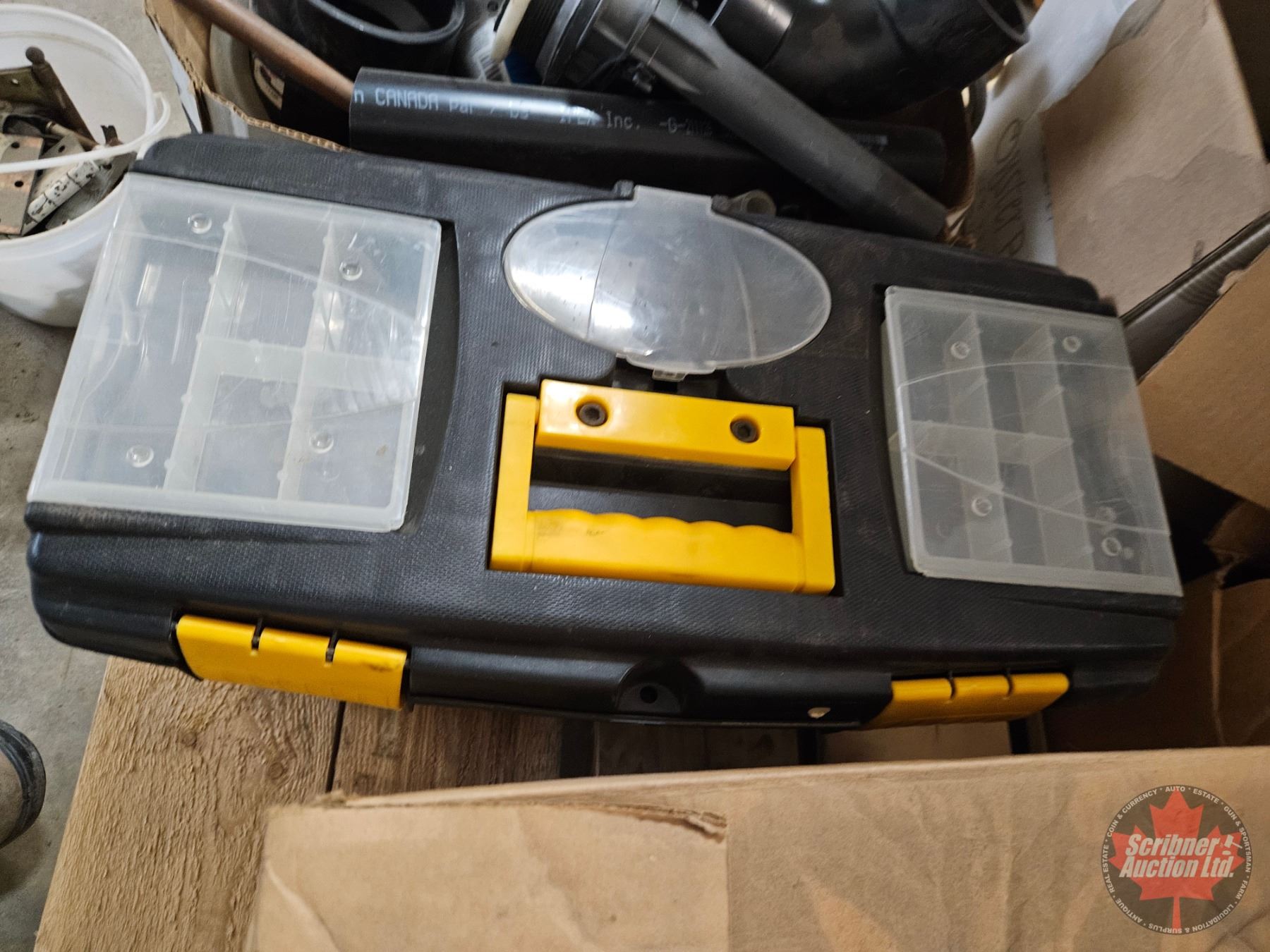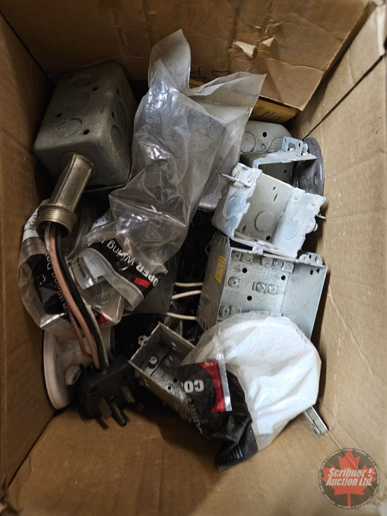 Pallet Lot: Variety of Plumbing / Electrical (12v / 110v) ; Joist Hangers; Hinges