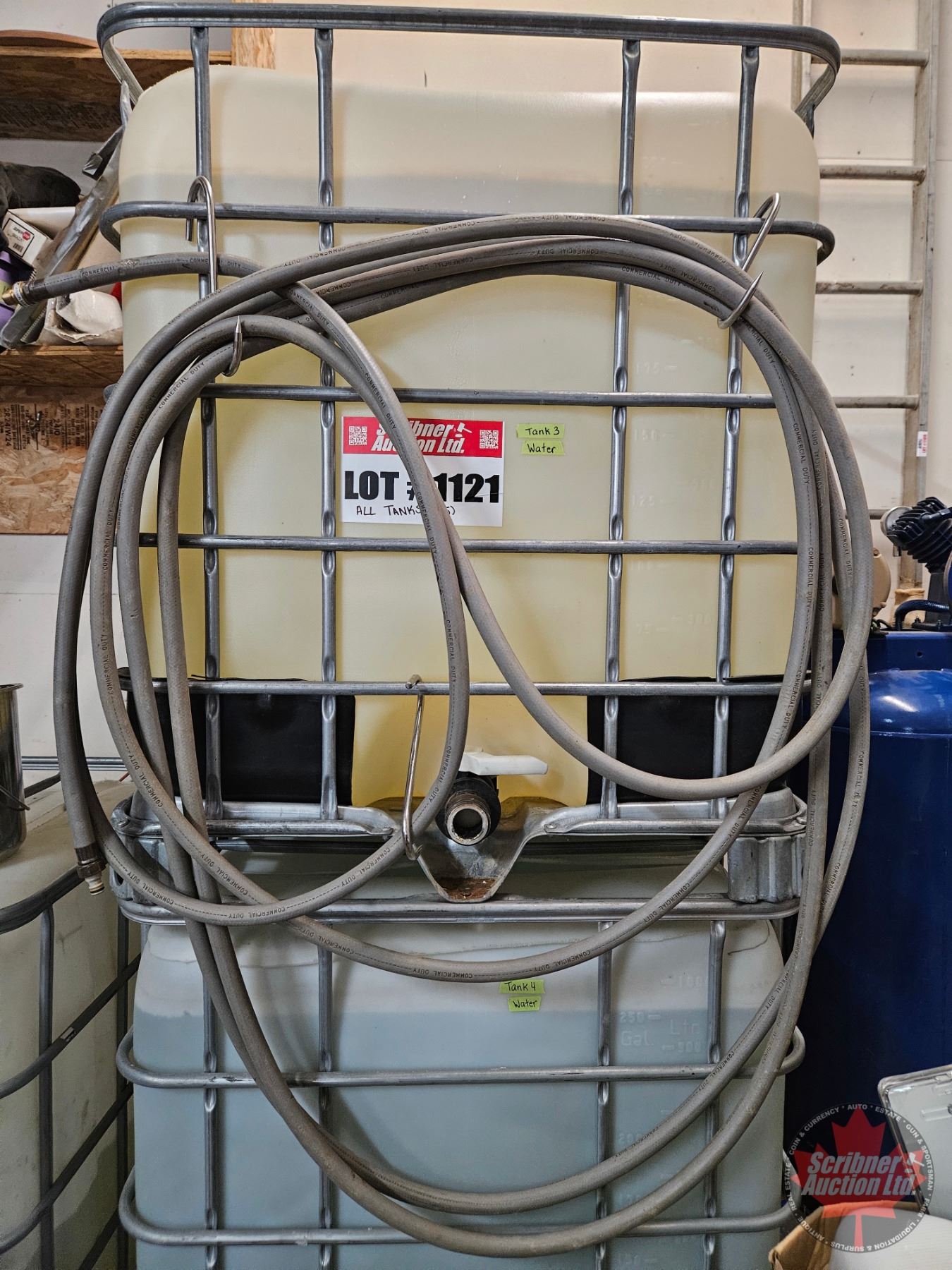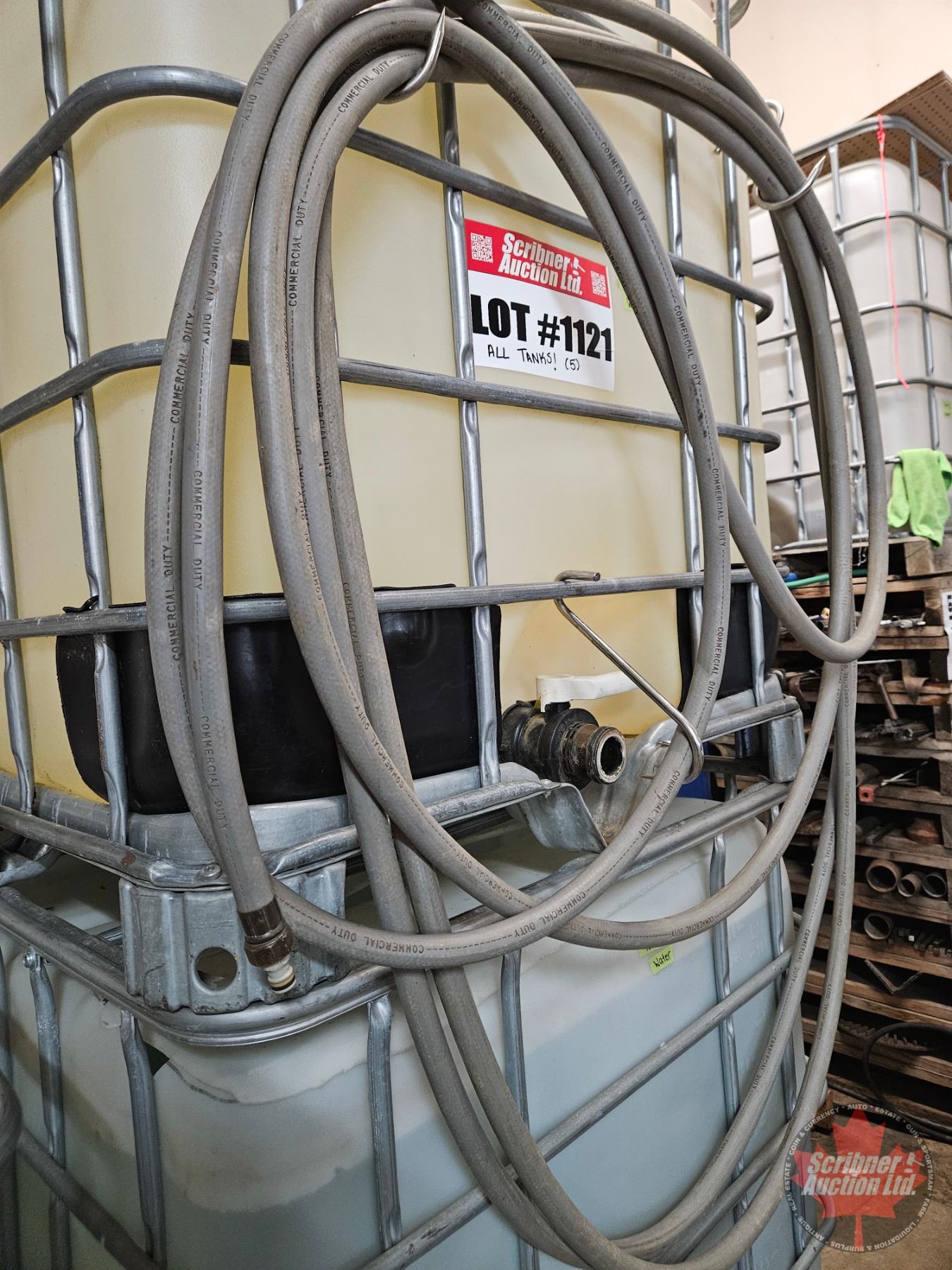 Lot 1121 Tote Tanks (5) : Top Access Cut Out (Valves on Bottom) 2" Valves c/w Hose