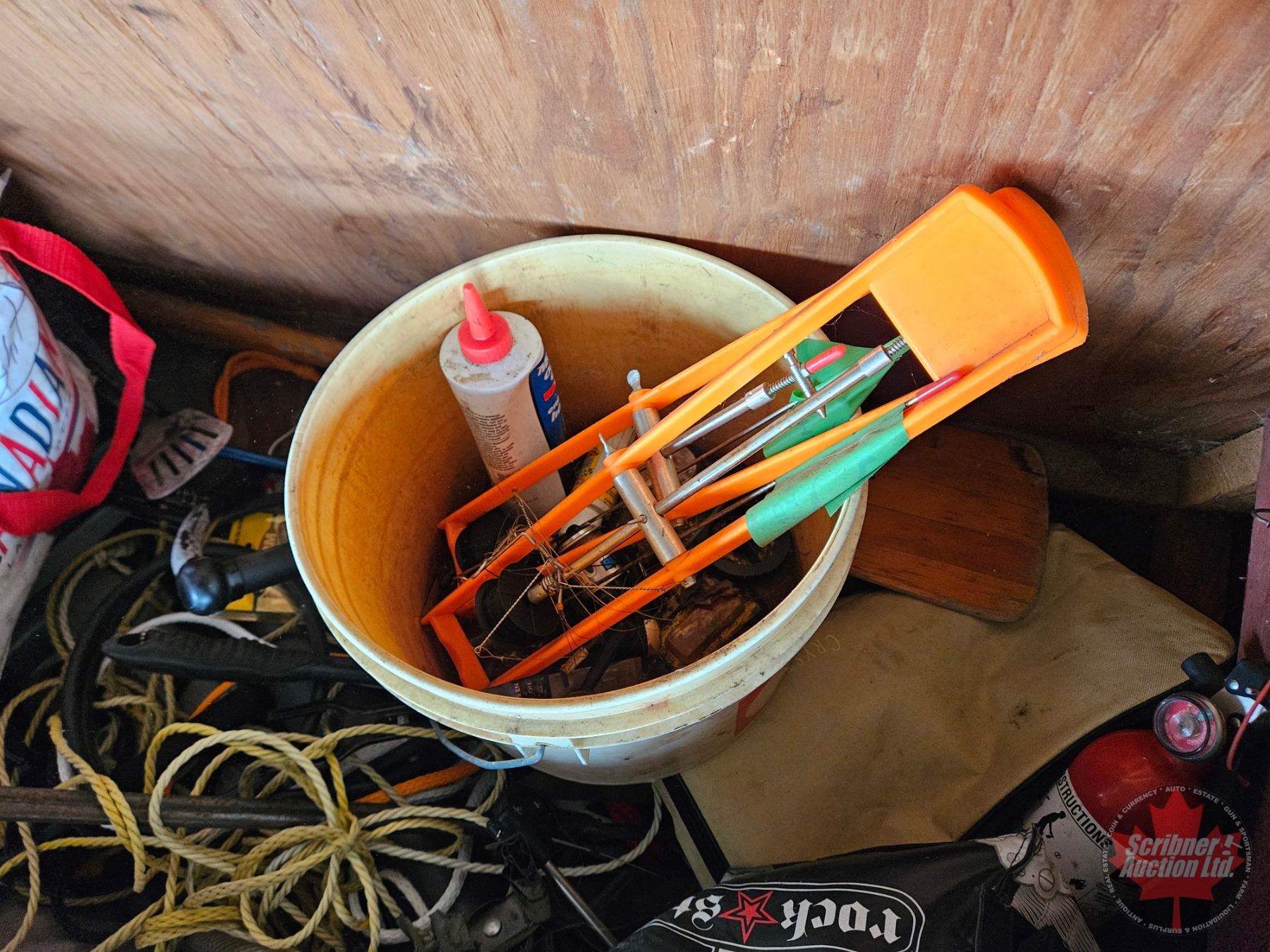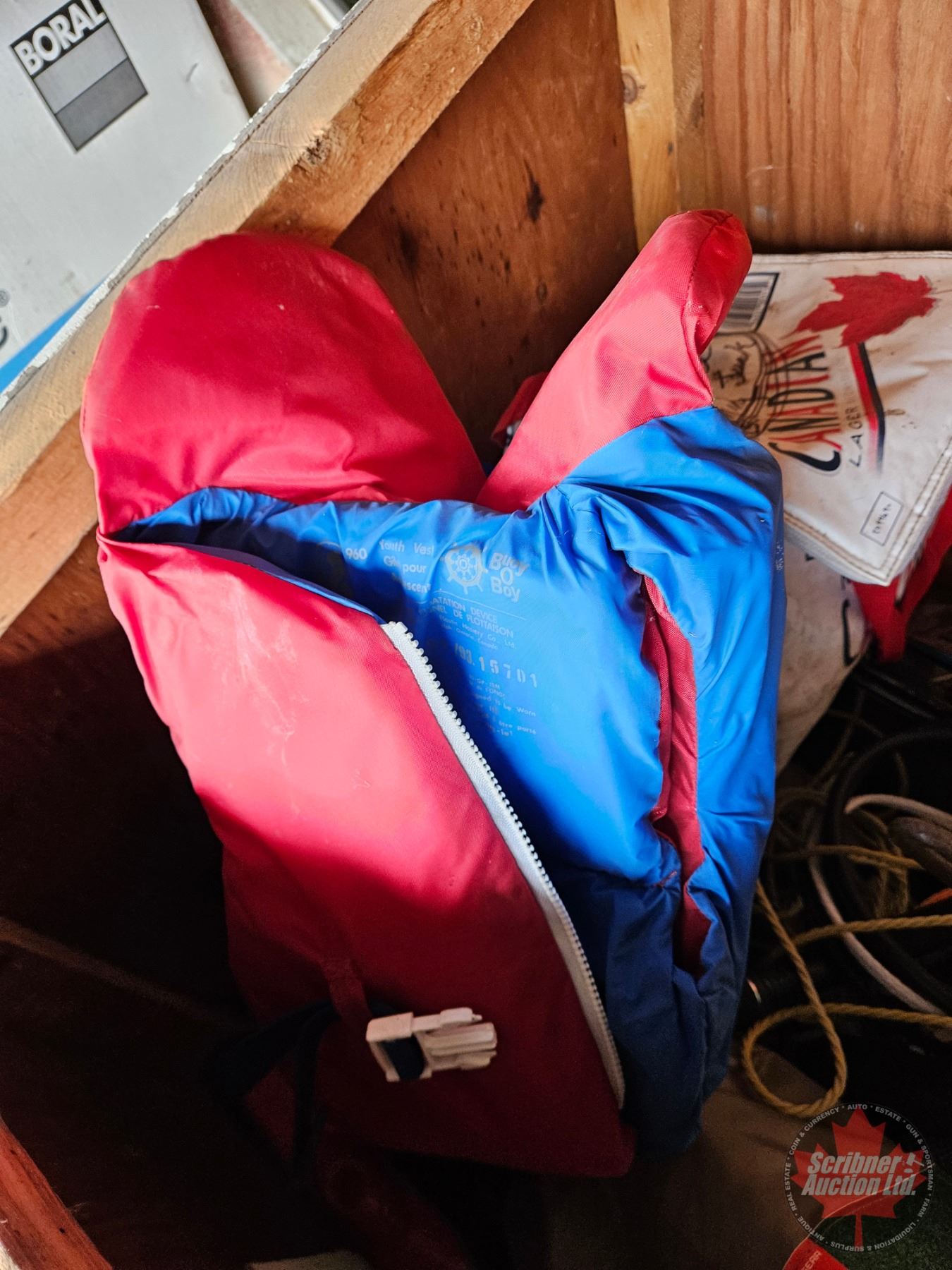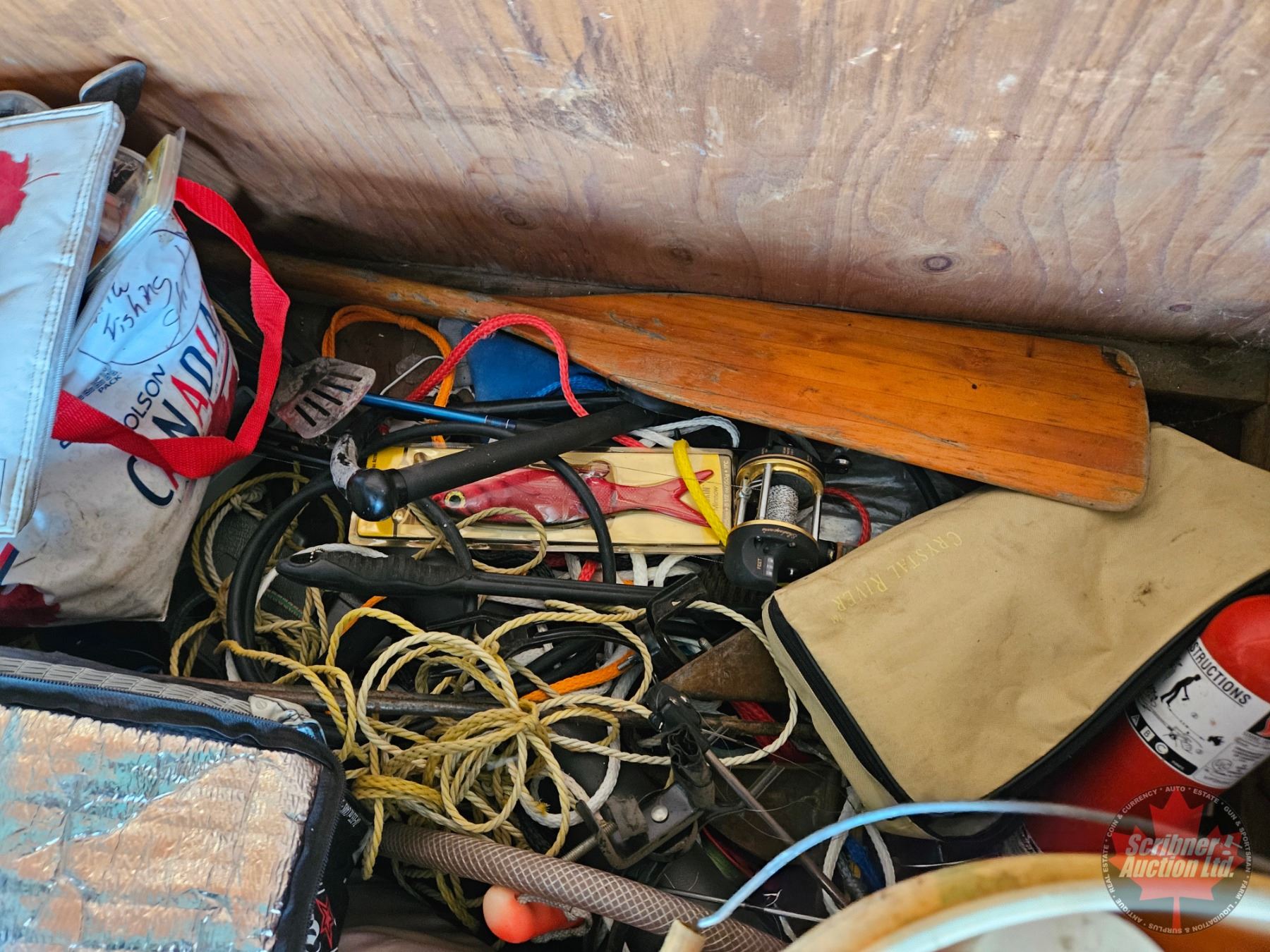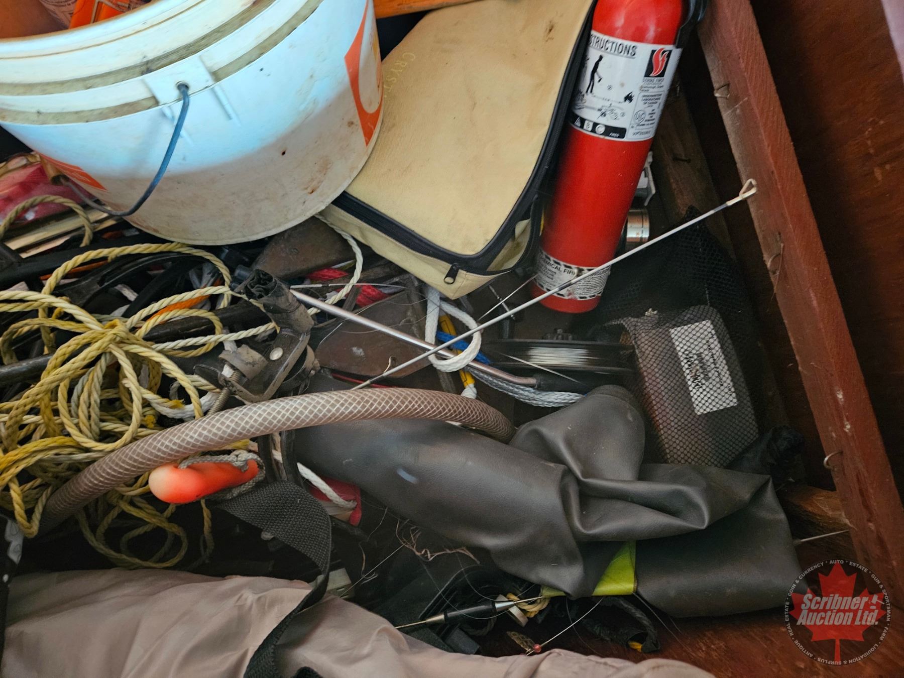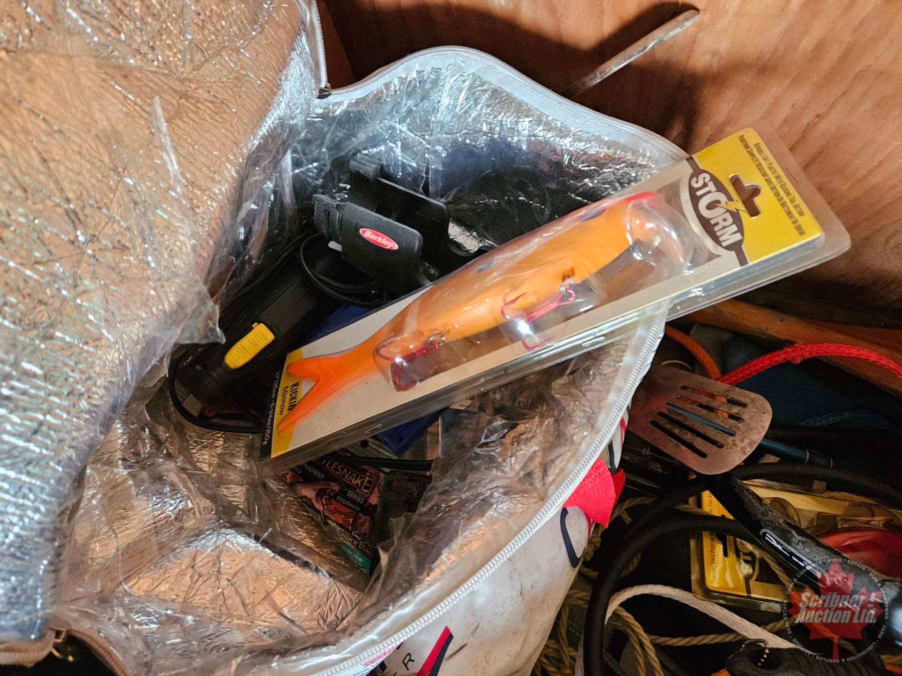 Lot 1142 Boat/Fishing/Camping Supplies with Plywood Storage Box
