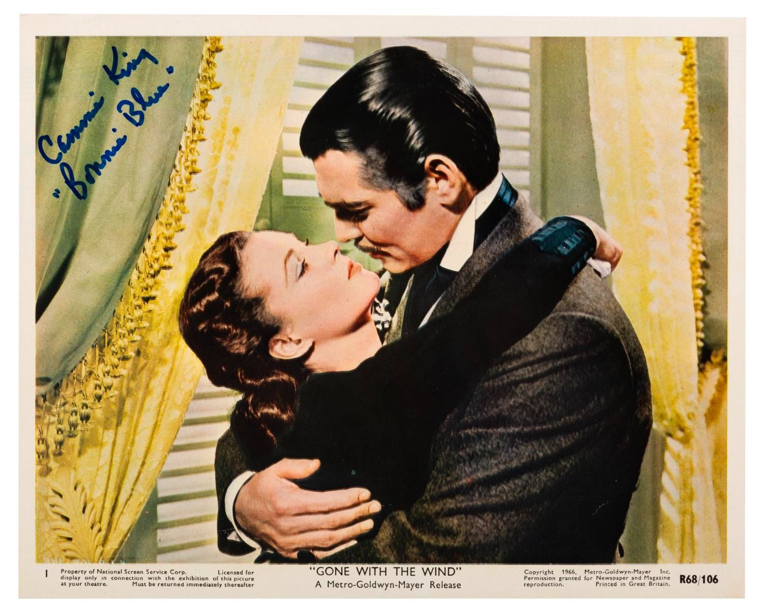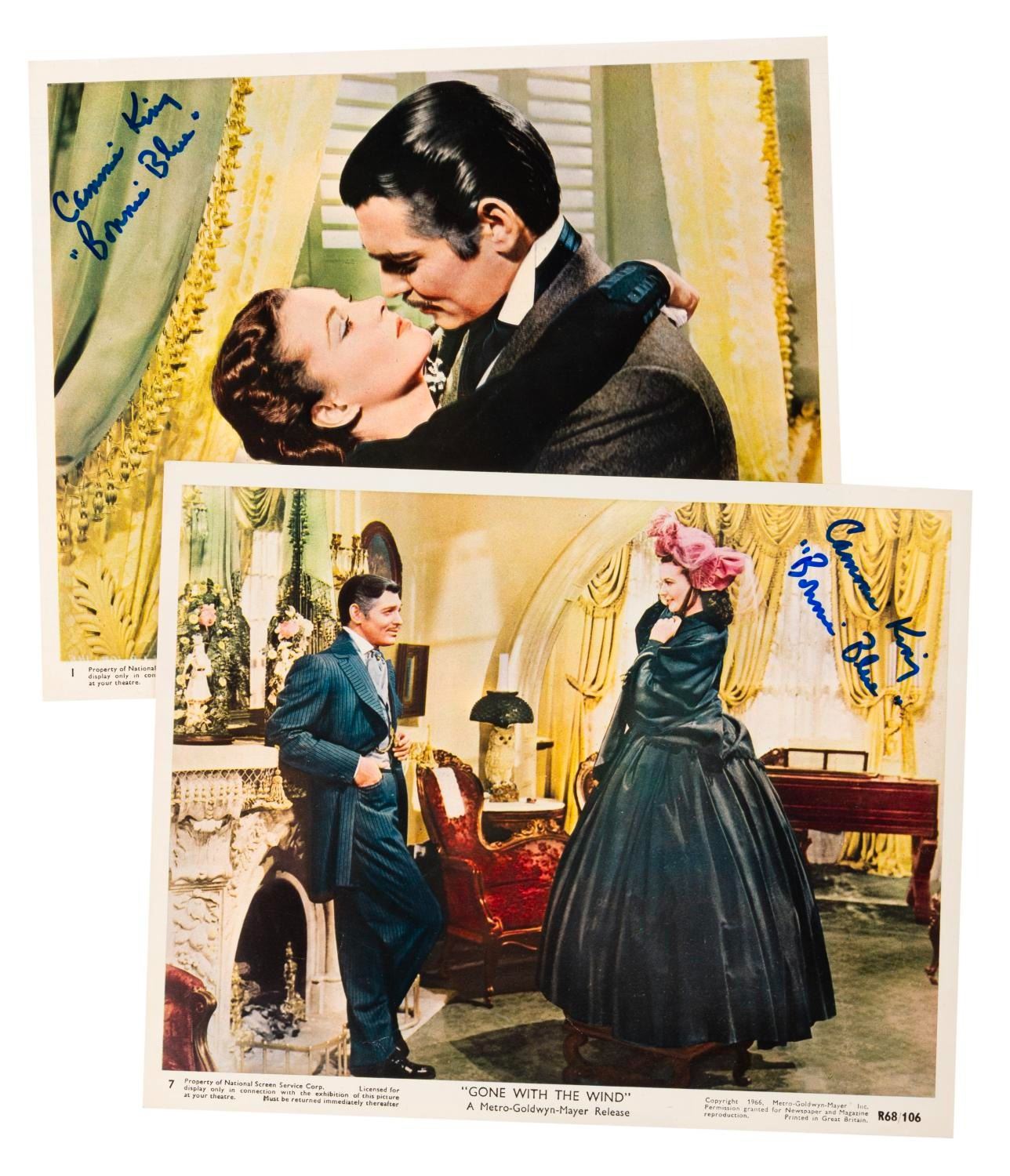 (MGM, 1968) A pair of lobby cards for the 1968 re-release of "Gone with the Wind, " signed by Cammie King (Bonnie Blue Butler). Each measuring 8 " x 10 ", the autographed lobby cards are in very good condition with light handling wear.
