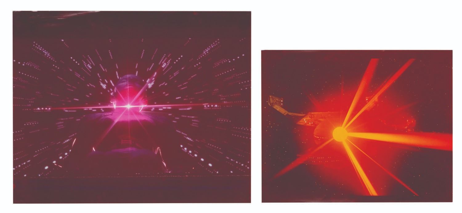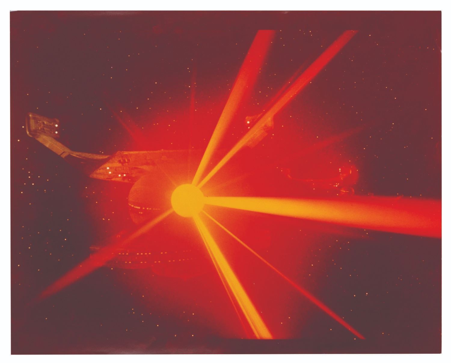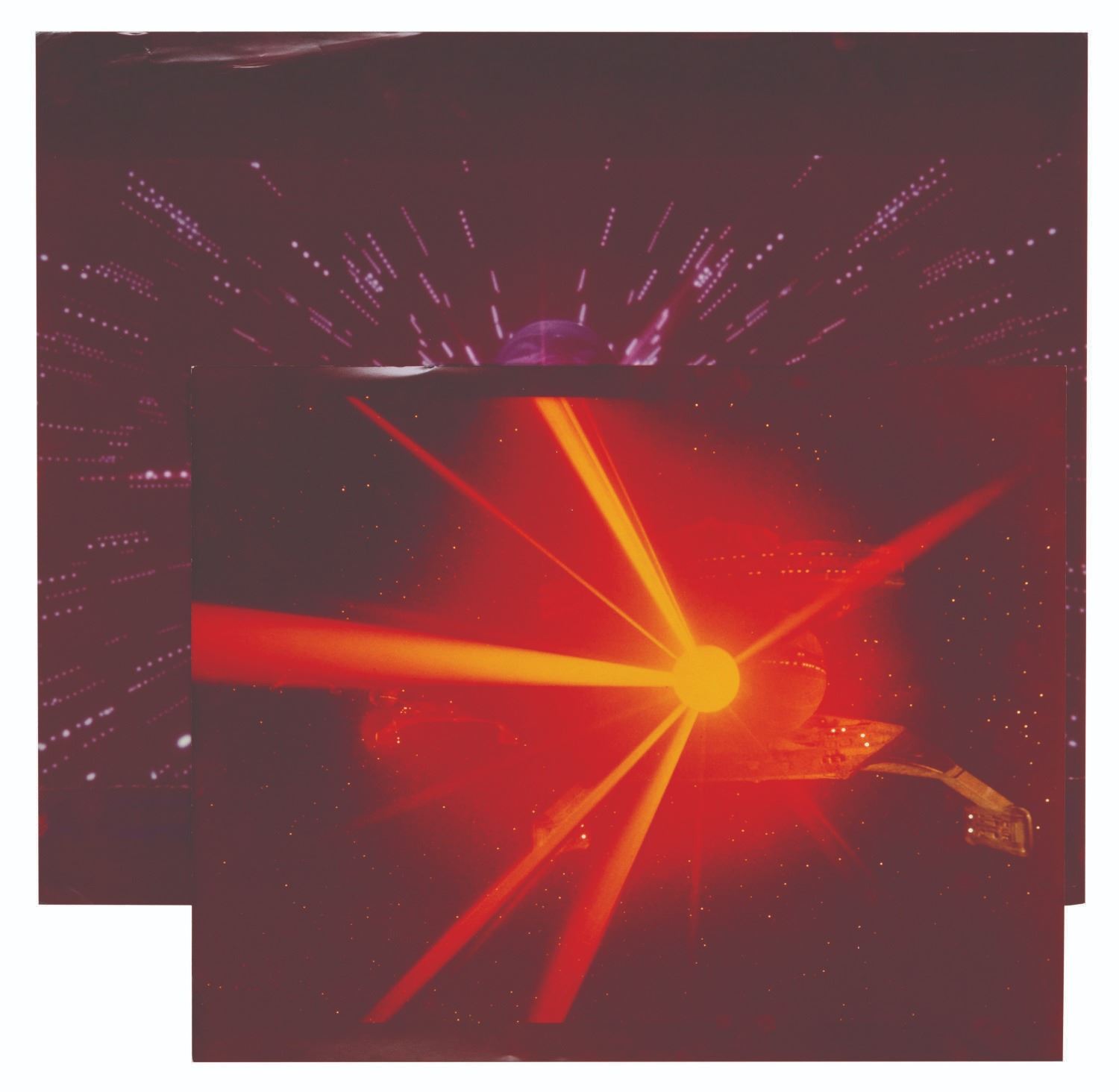(Paramount, 1979) A pair of oversized photo prints of visual effects scenes in "Star Trek: The Motion Picture, " used for the development of print ads. The Klingon ship firing photo measures 16 " x 20 ", and the Ilia print measures 20 " x 24 ". Both prints are in very good condition with light wear from production use, and color shift typical of age.