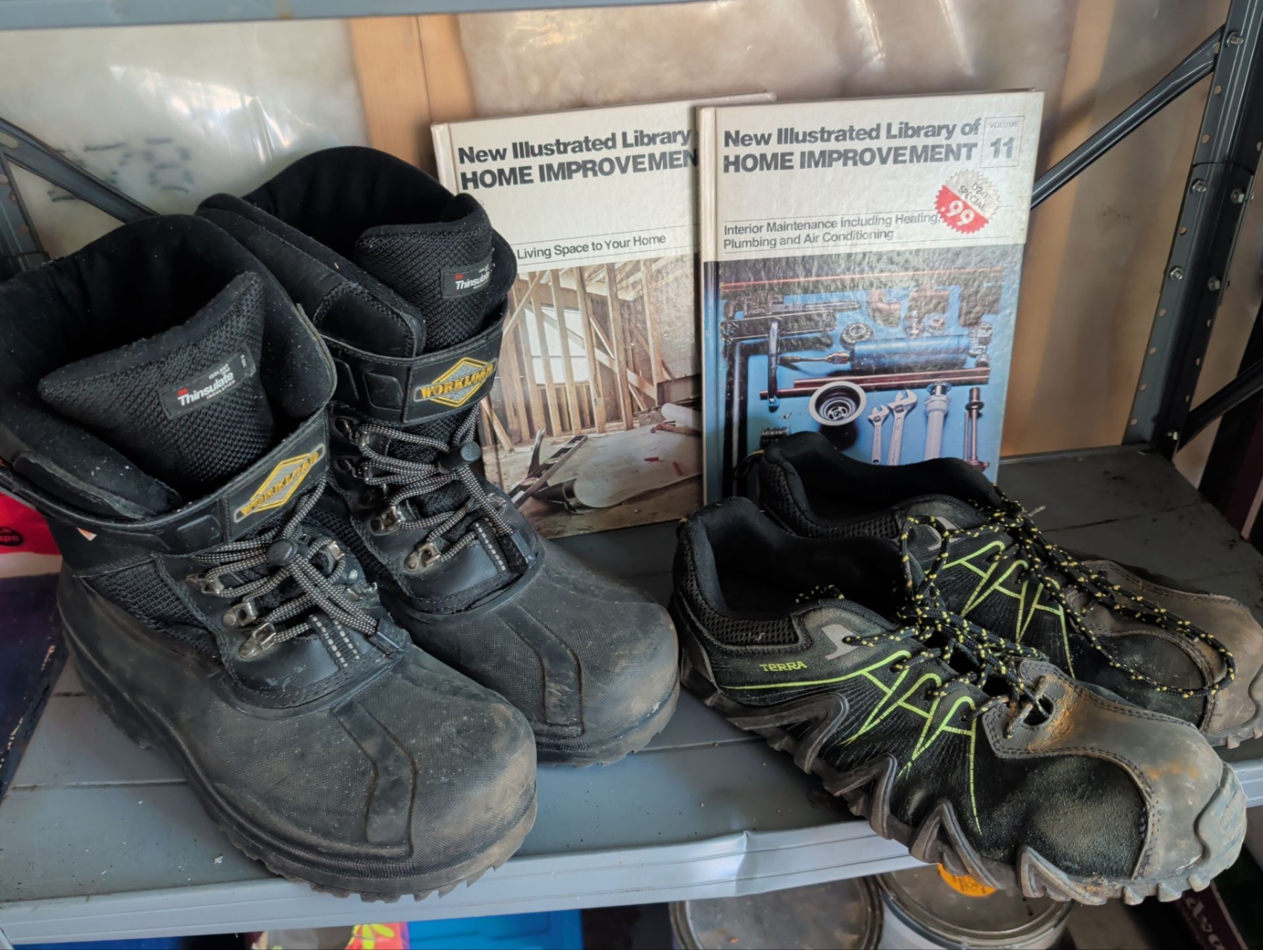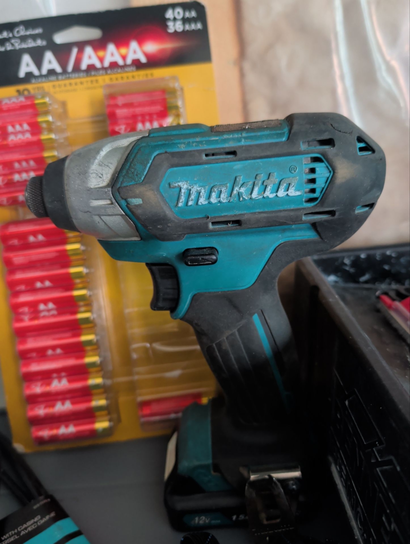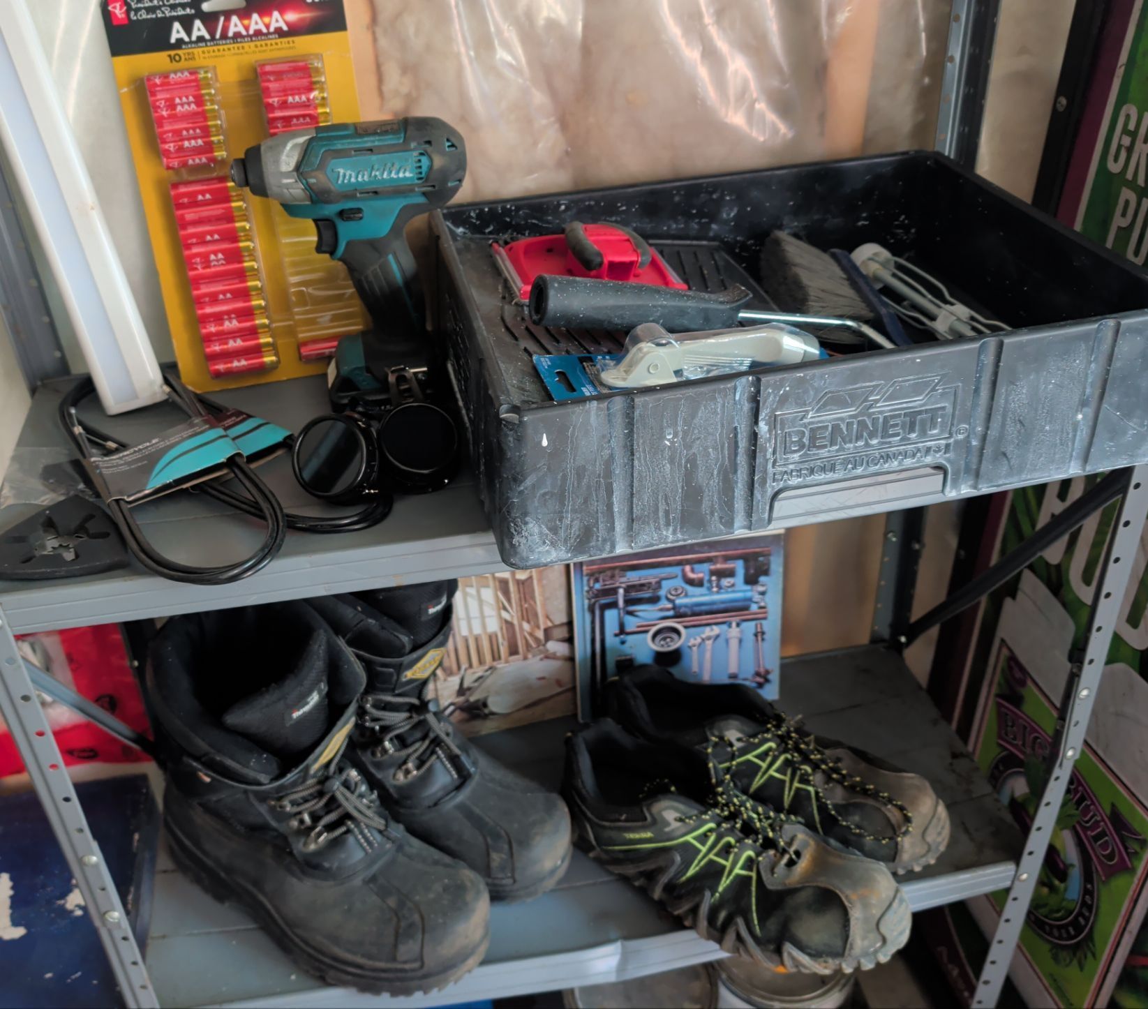 Lot 179 2 Shop Shelves Contents - 12V Max MAKITA Impact w/ Battery Men's Size10.5 Work Shoes & More