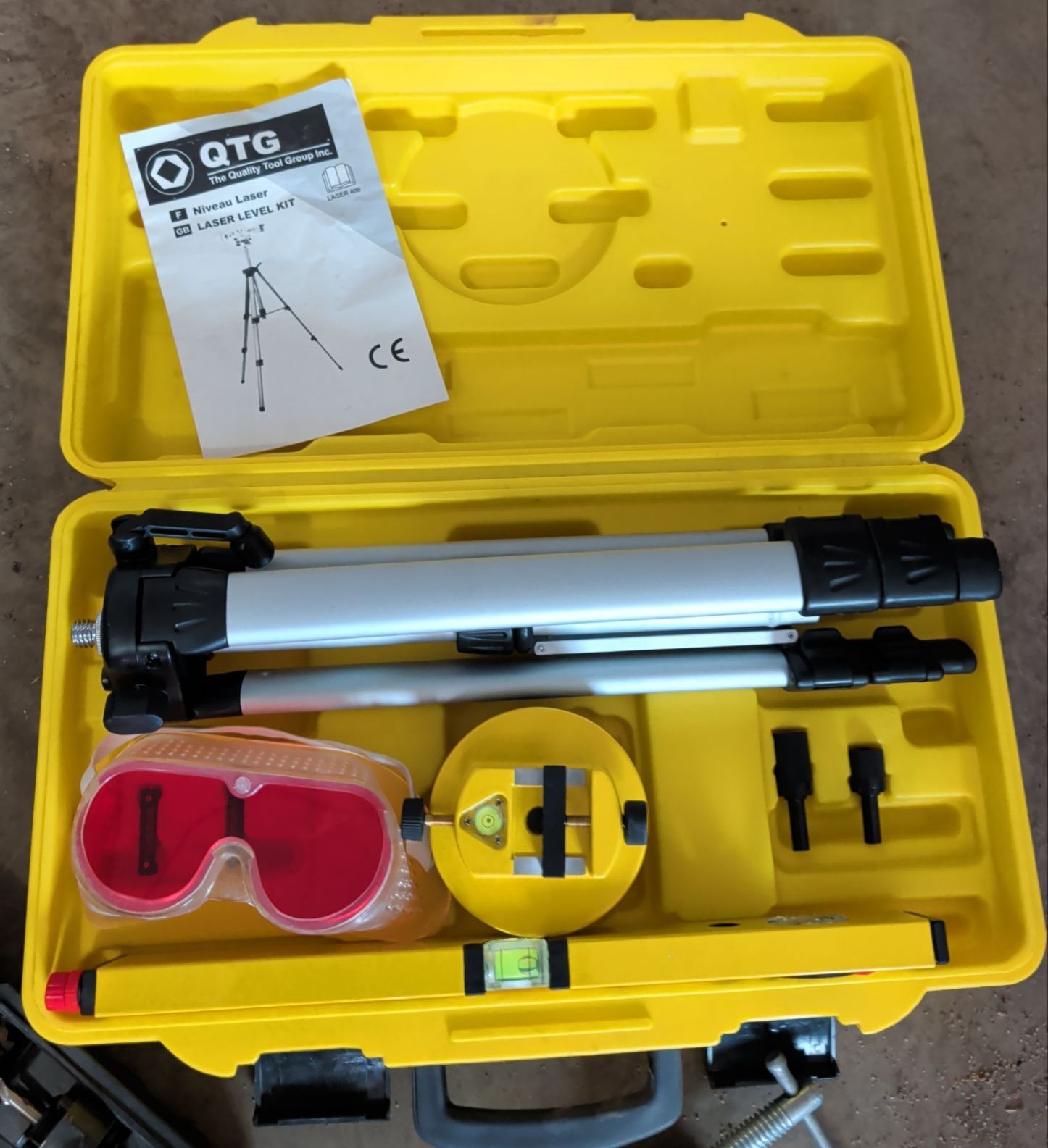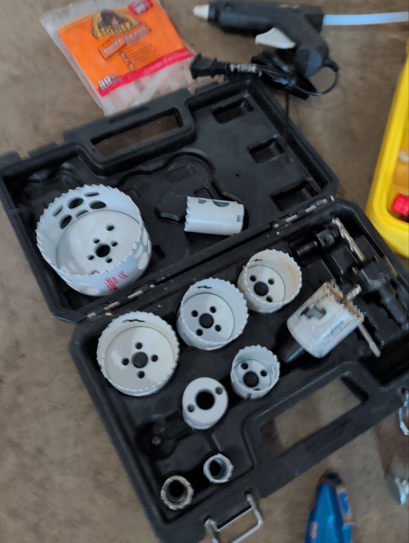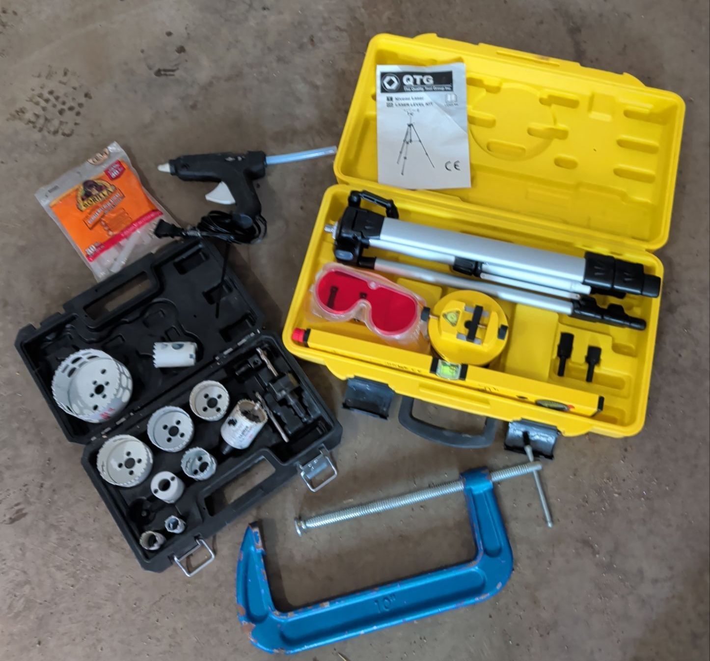 Lot 205 Laser Level Hole Saw Set Glue Gun w/ Sticks & Large Clamp