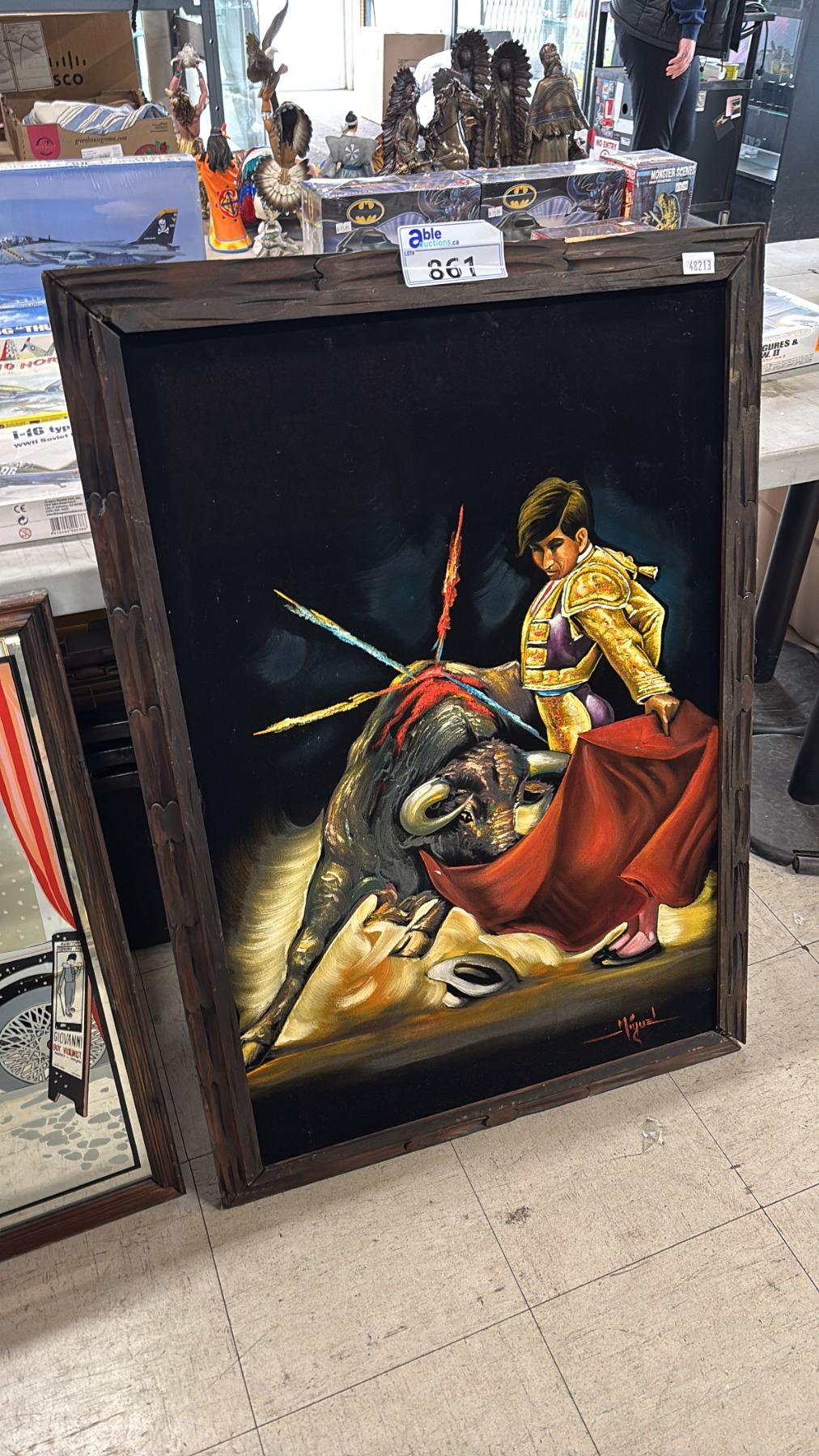 Lot 861 VINTAGE FRAMED VELVET MATADOR BULLFIGHT PAINTING (DETACHED FROM FRAME)
