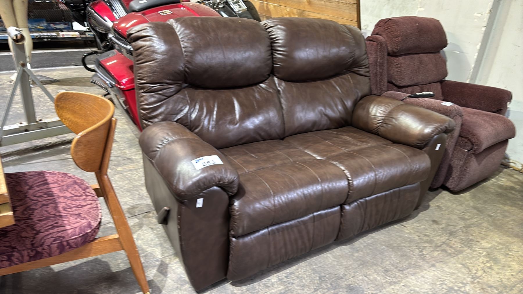 Lot 883 LEATHER RECLINING LOVESEAT