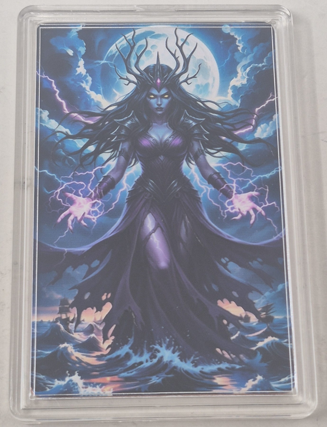 With raised colorized back. In protective capsule. Measurement including capsule is approx. 2.5 inches x 3.75 inches. Low mintage.