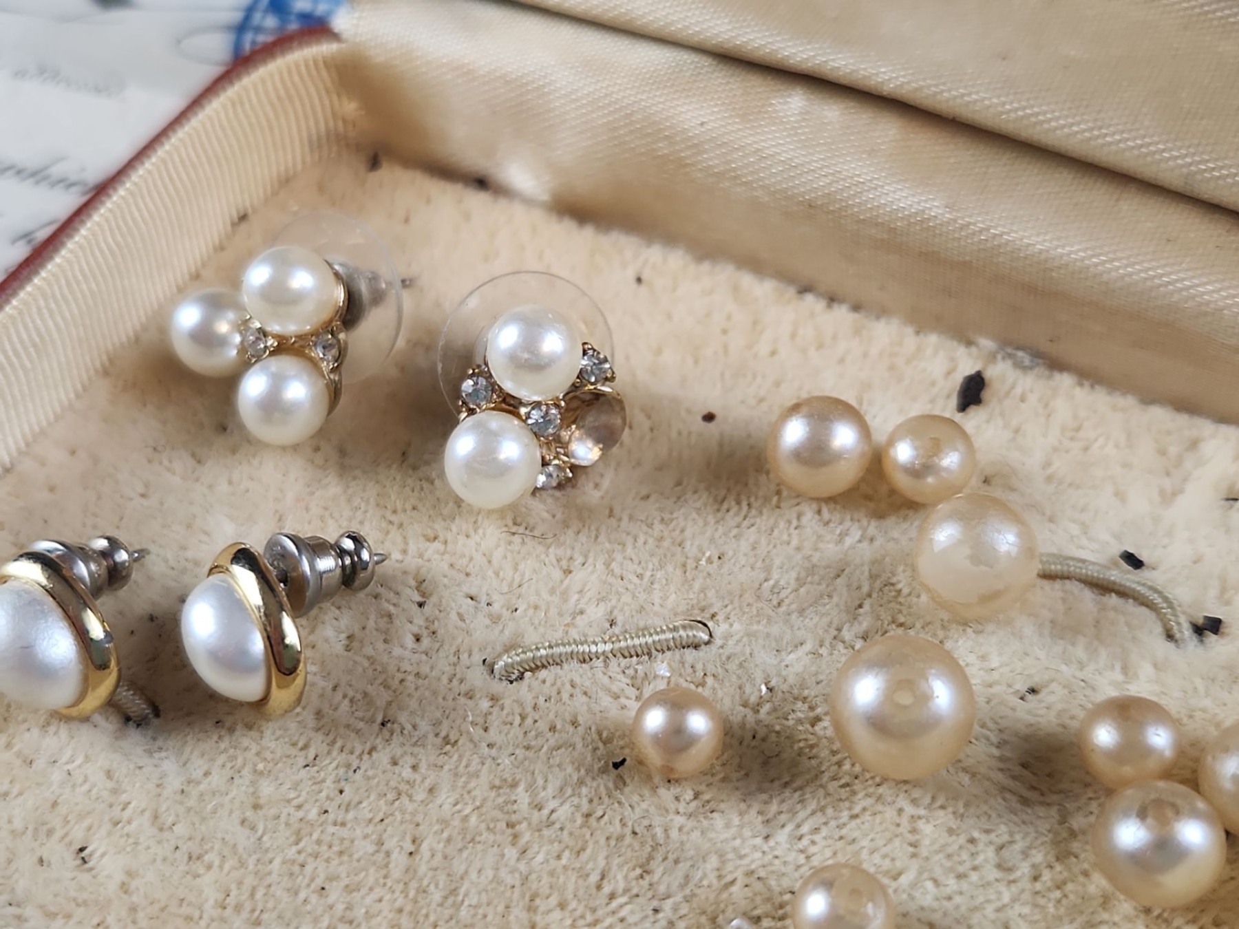 Lot 6 2 Strands of Authentic Cultered Pearls (Some Damage), With 2 Sets of Imitation Pearl Studs