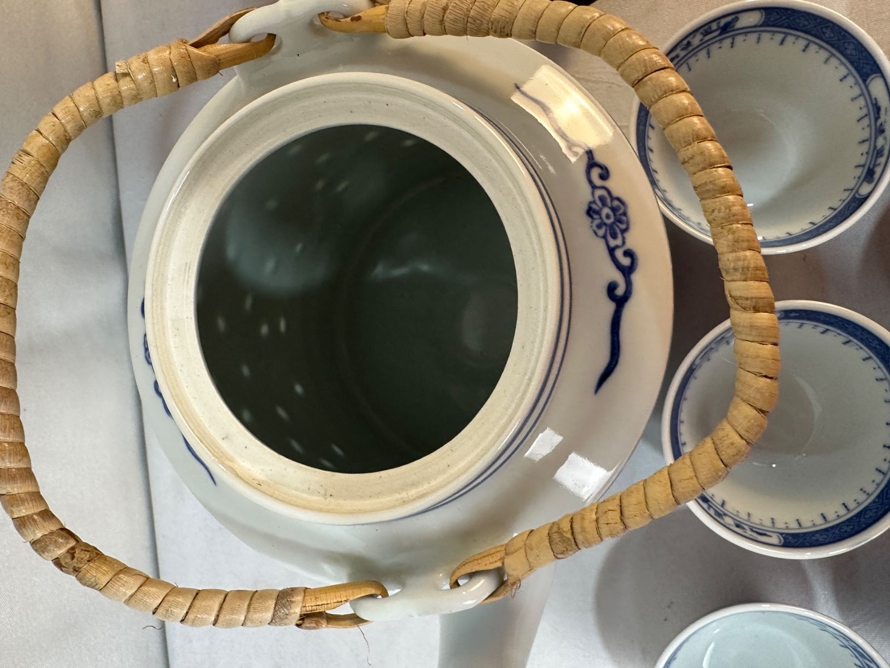 Lot 1567 Vintage Chinese Teapot with Cups & Candle Holder
