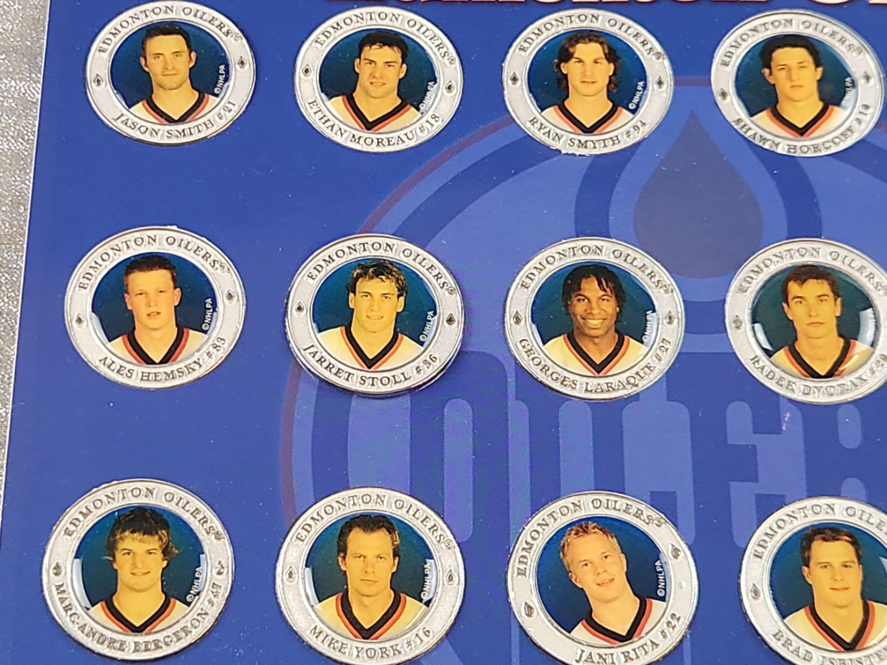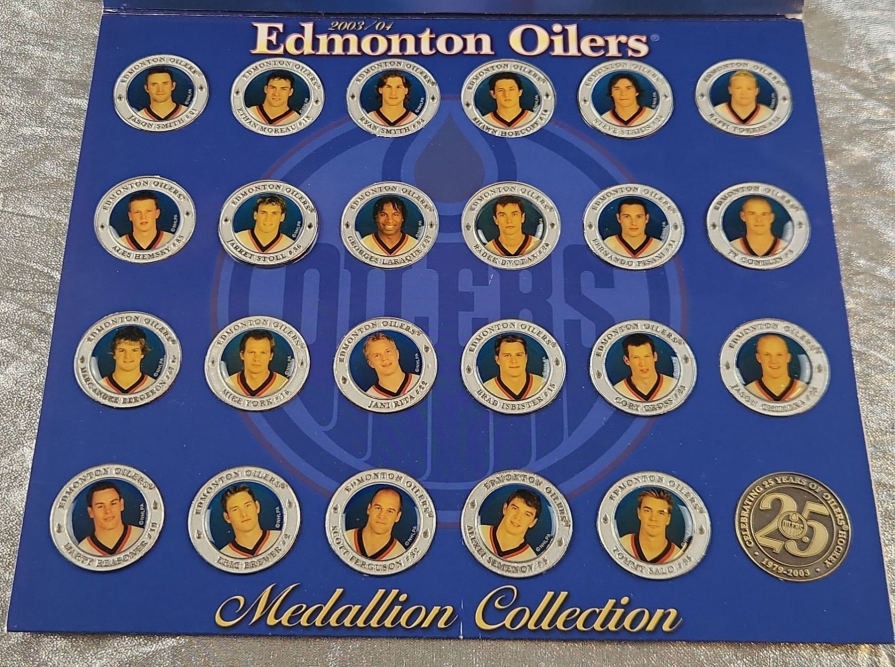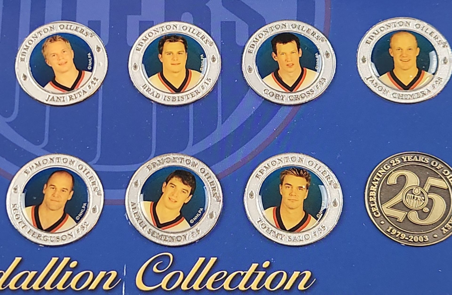 Lot 11 2003/04 Edmonton Oilers Medallion Collection Including Hockey Cards and Commemorative Medallion